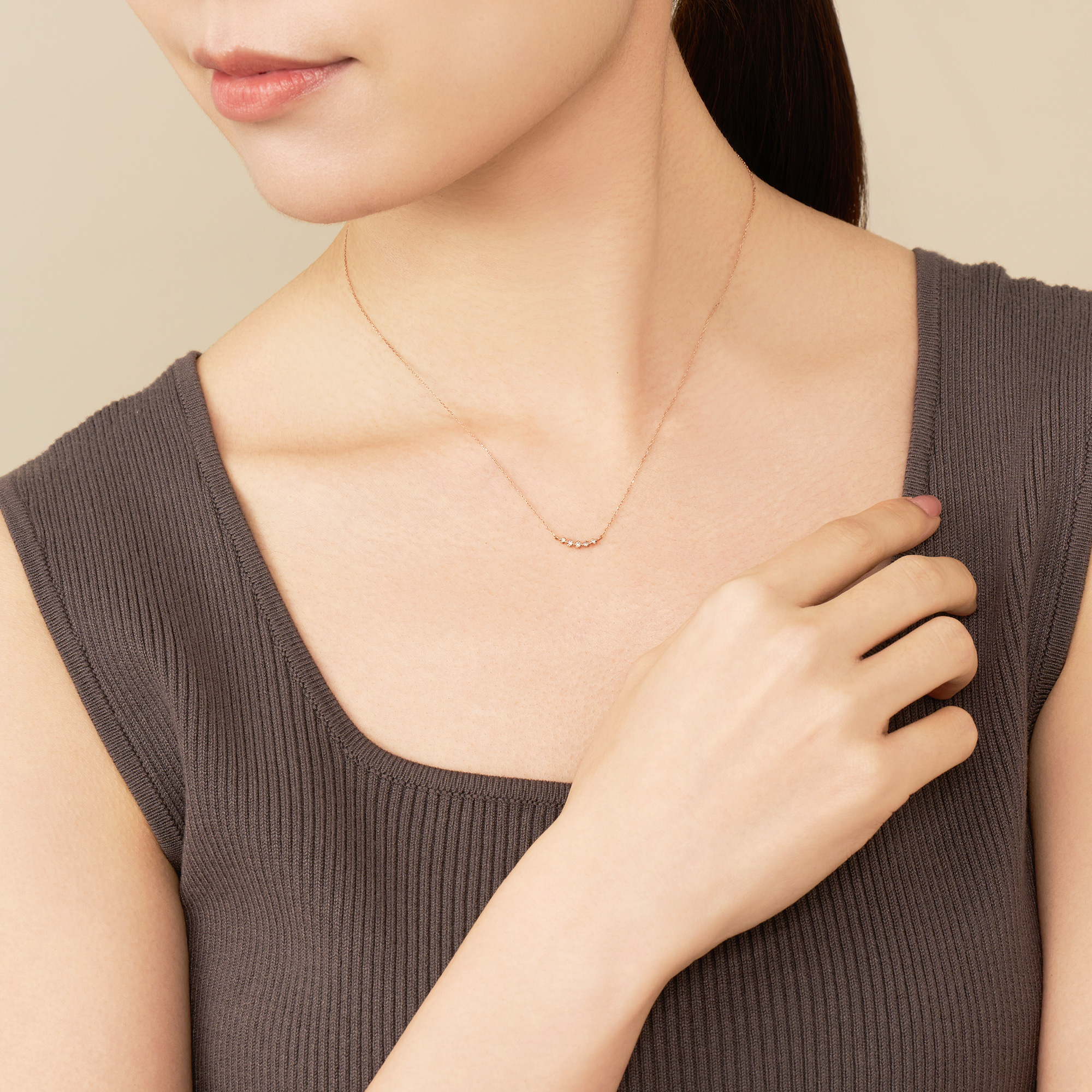 5石のダイヤモンドをデコルテに沿うように連ねたベーシックなネックレス。