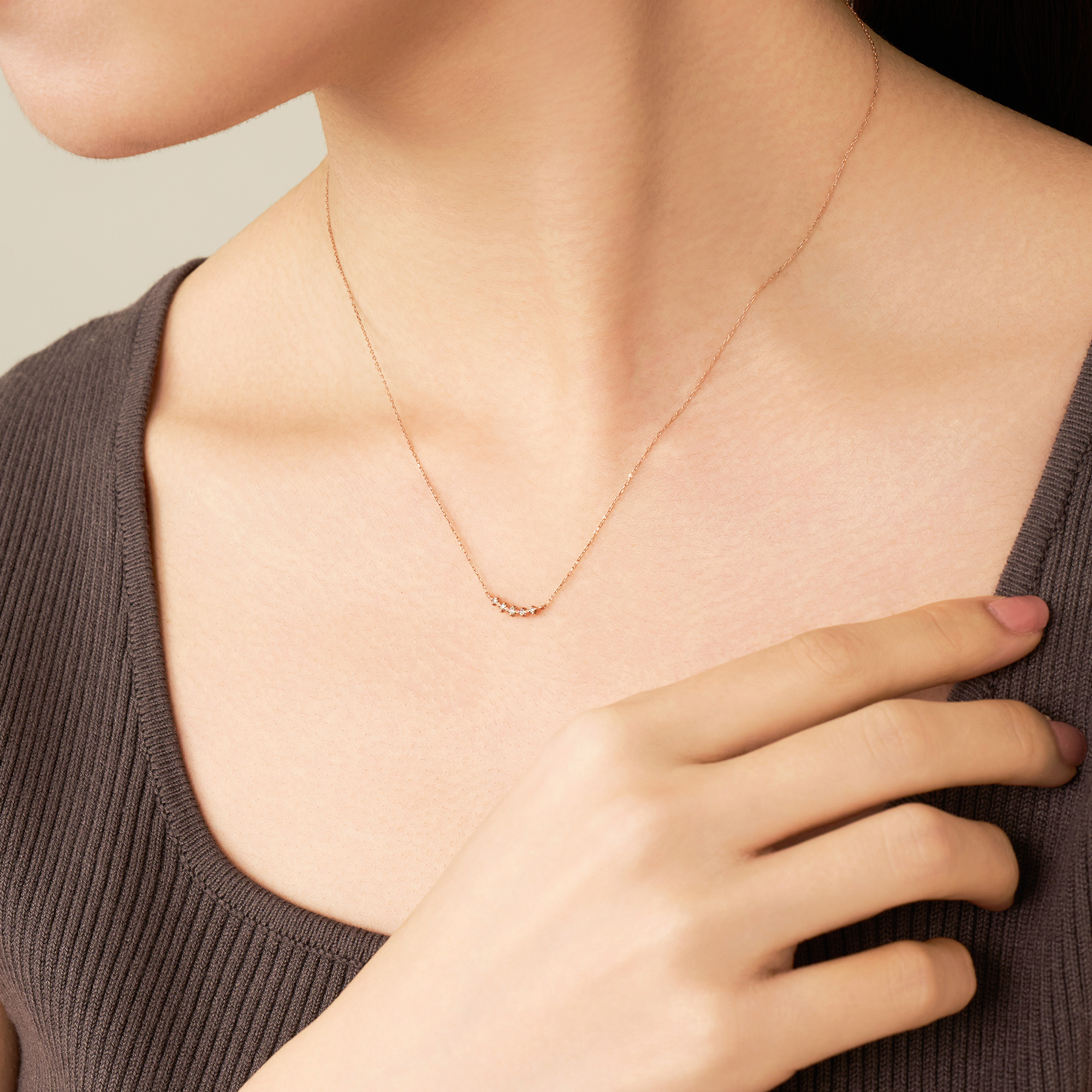 艶やかなピンクゴールドが胸元に女性らしさをプラス。