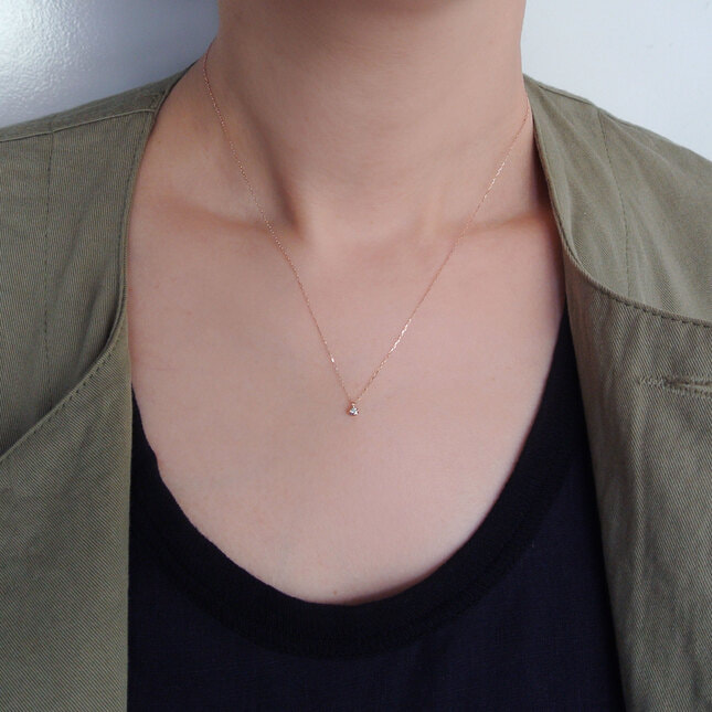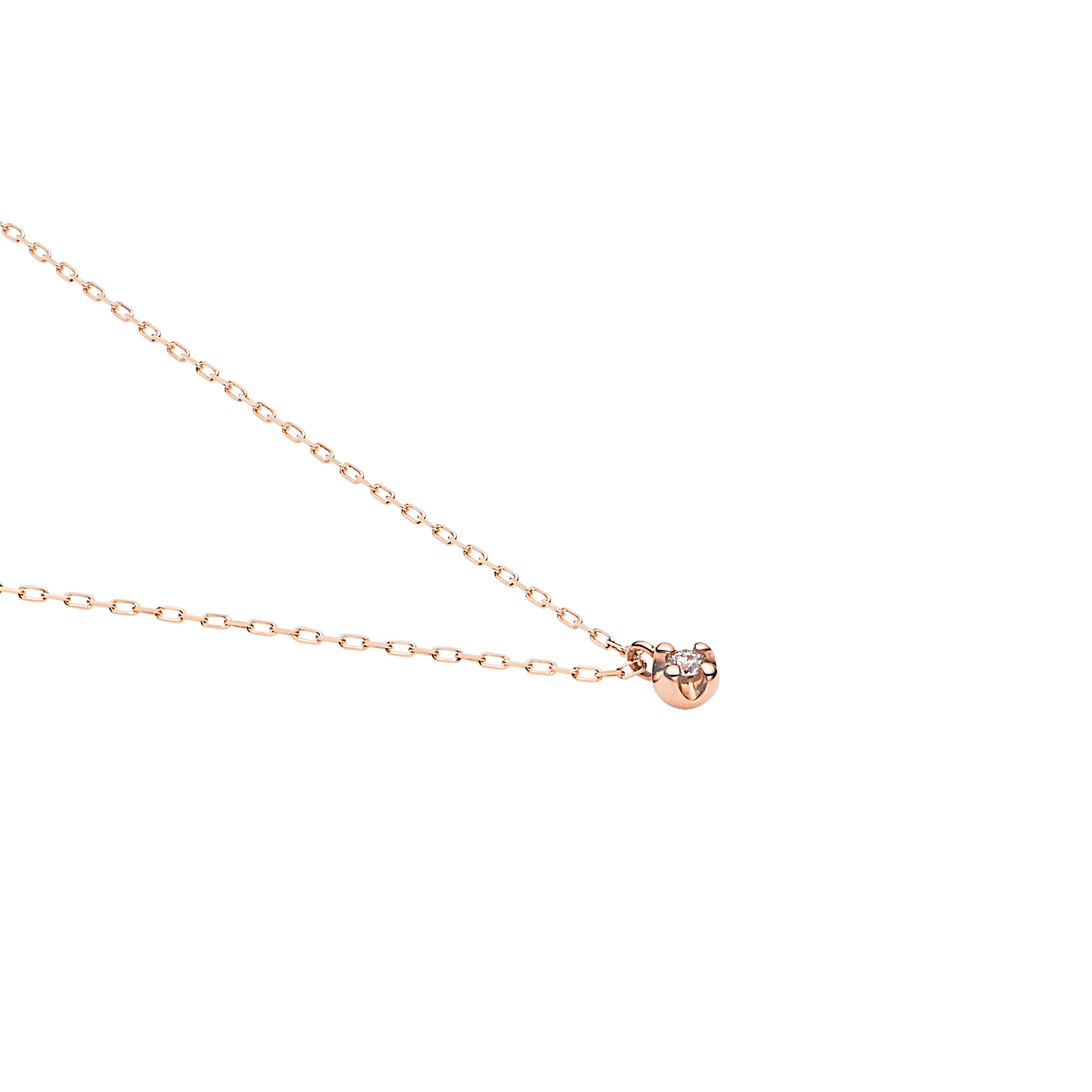 コロンとした丸みが愛らしい石座に一粒のきらめくダイヤモンドをセッティングしたベーシックなネックレス。