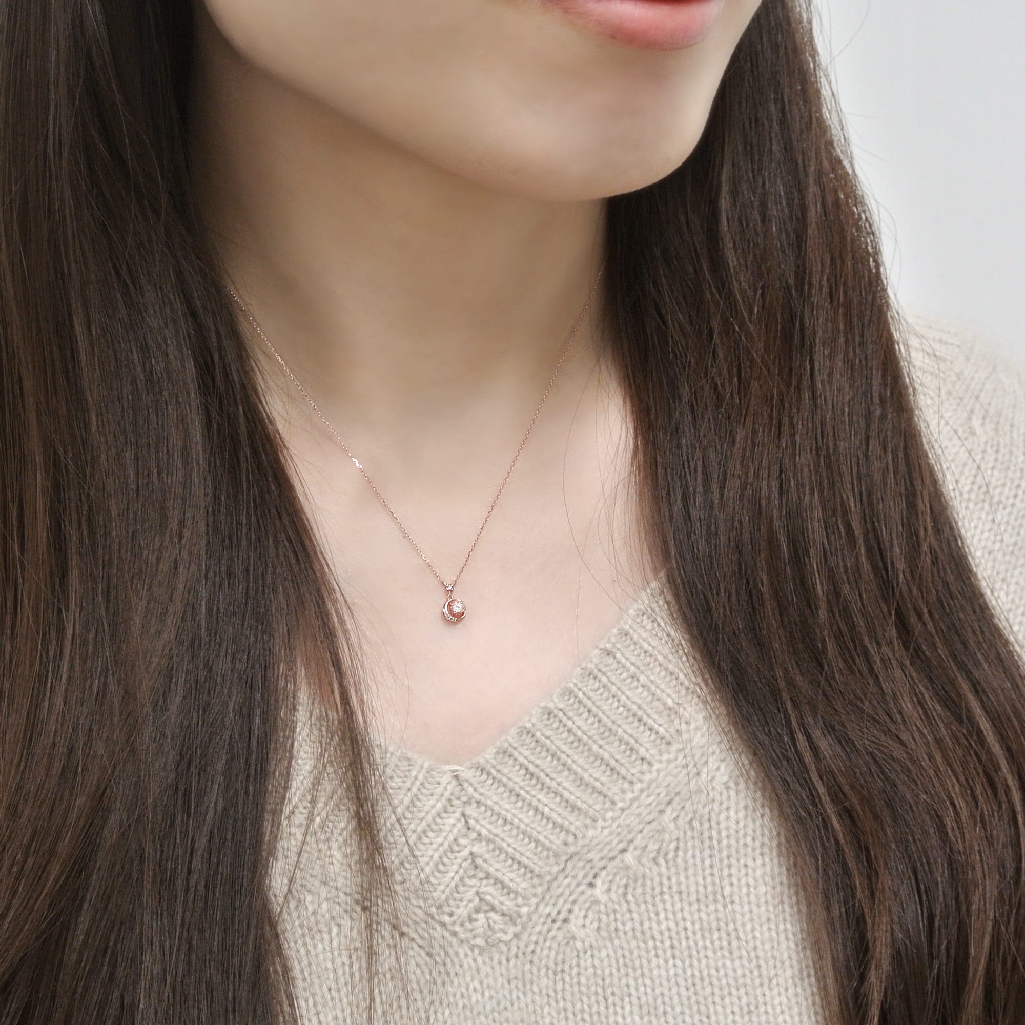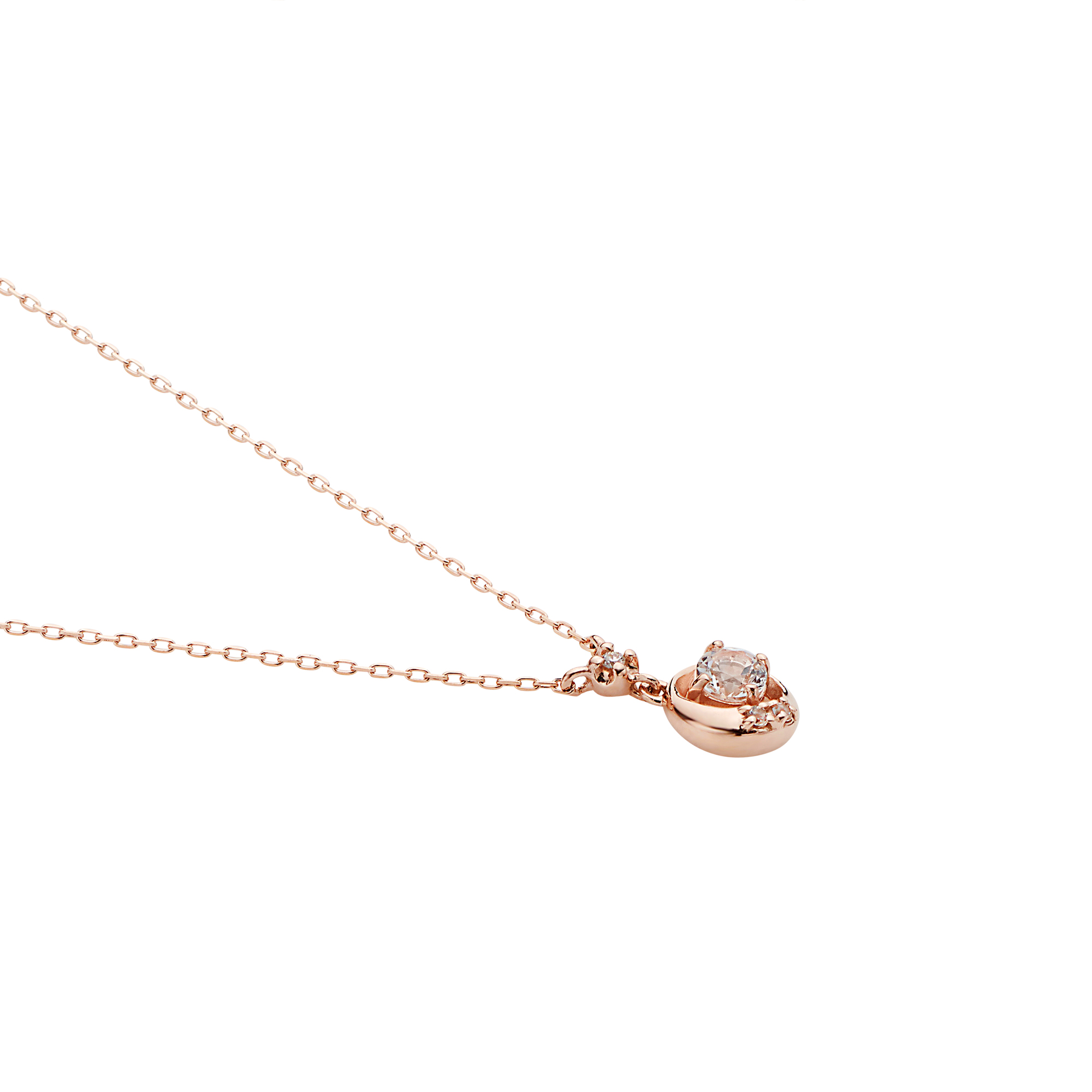 水をたたえたような輝きのホワイトトパーズをそっと空間を空けて囲むのは、小さなホワイトトパーズを配した三日月。チェーンから続く三日月の上の星のような1粒はダイヤモンドです。 着ける人の動きに合わせてキラキラと三日月が揺れる、軽やかさと華やかさを併せ持つネックレスです。 ▼カラーバリエーションはこちらホワイトゴールド▼4月の誕生石 ダイヤモンドのアイテムはこちら▼11月の誕生石 トパーズのアイテムはこちら