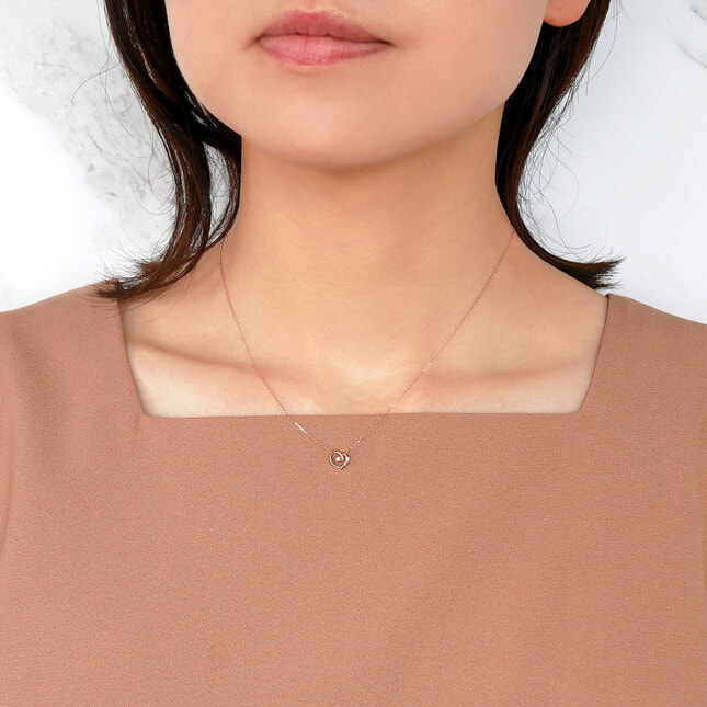 甘くなりすぎない仕上がりのネックレスは、大切な人へのギフトにぴったりです。