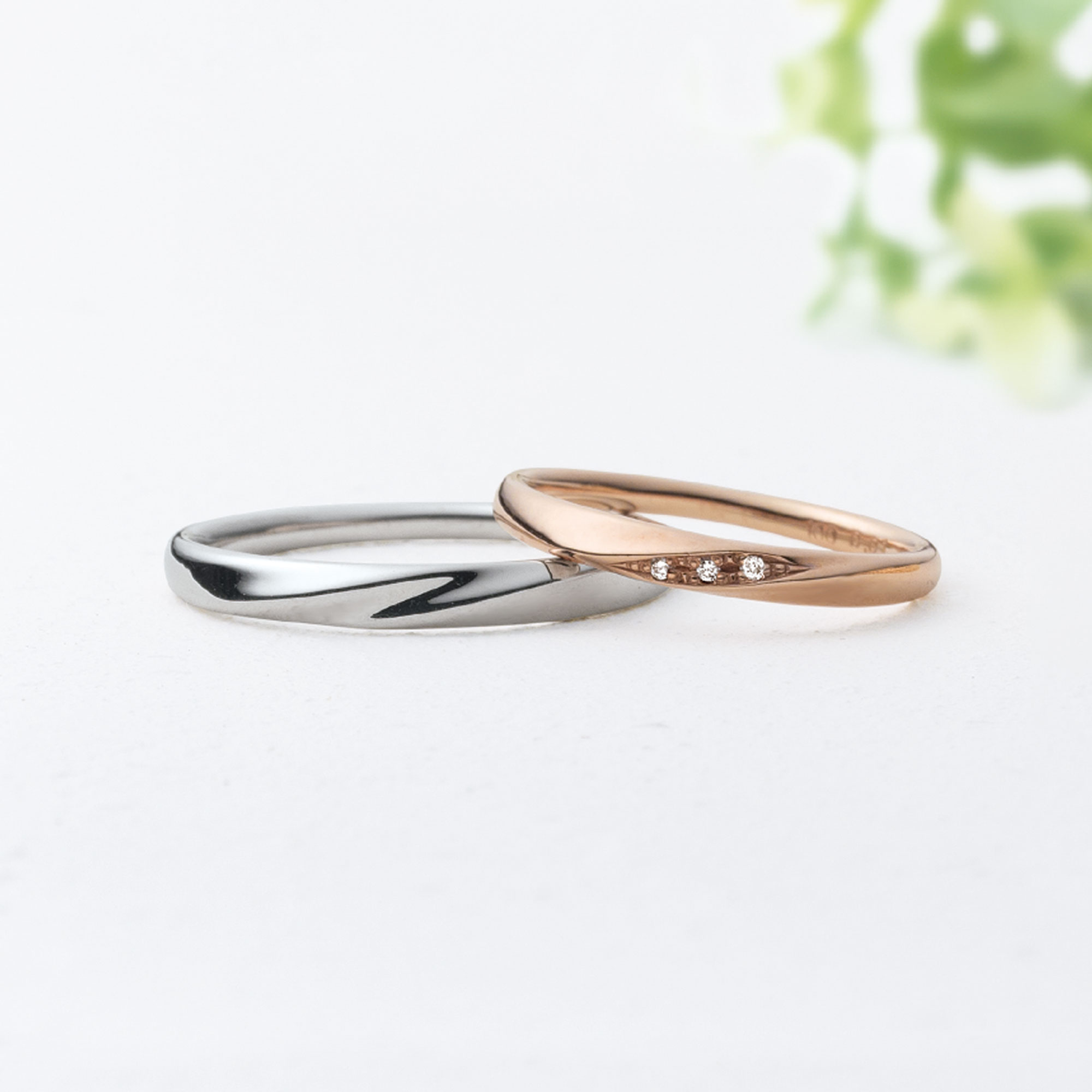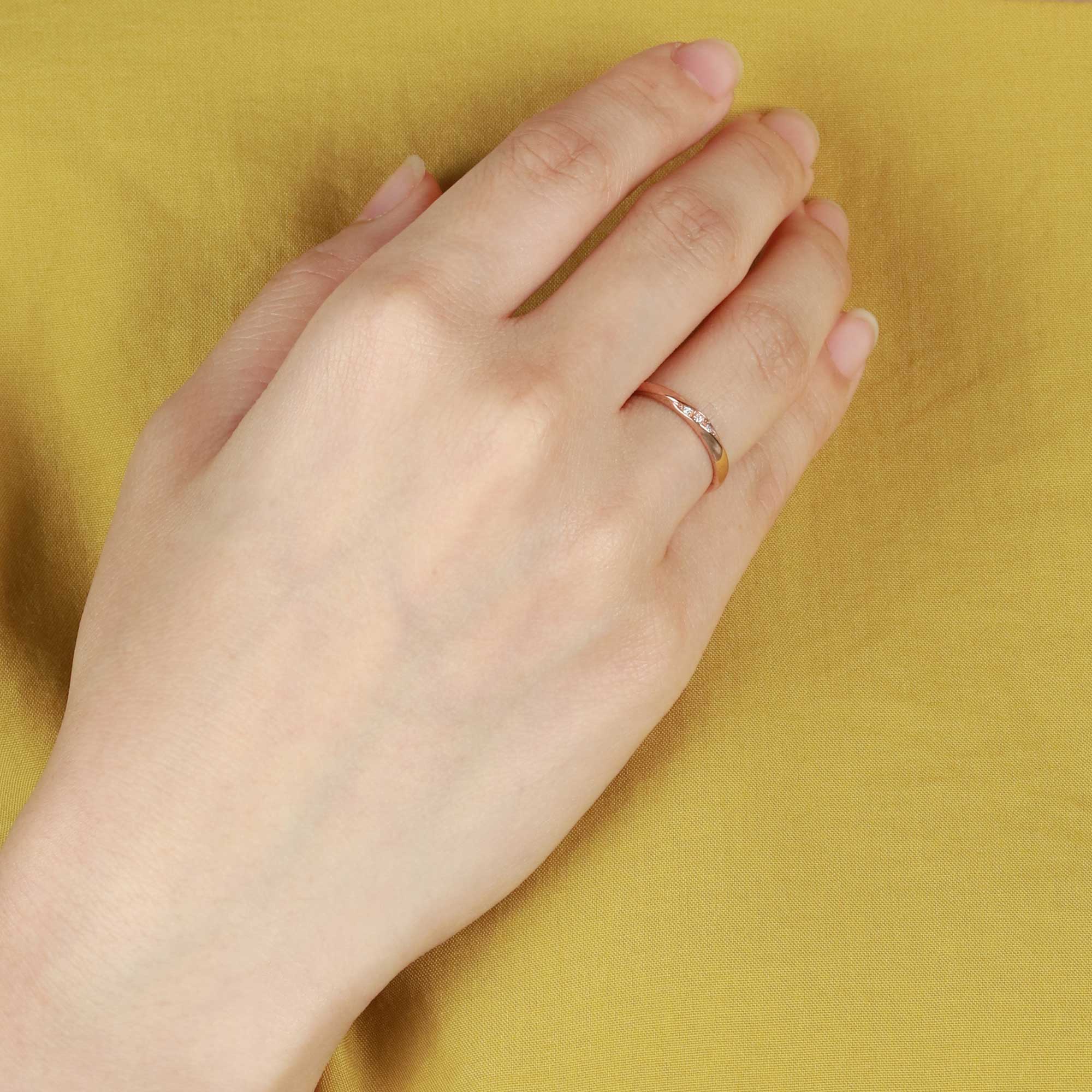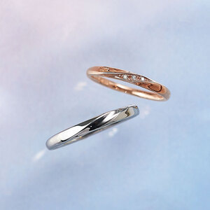 肌なじみの良いピンクゴールドにダイヤモンドをあしらったペアリング。