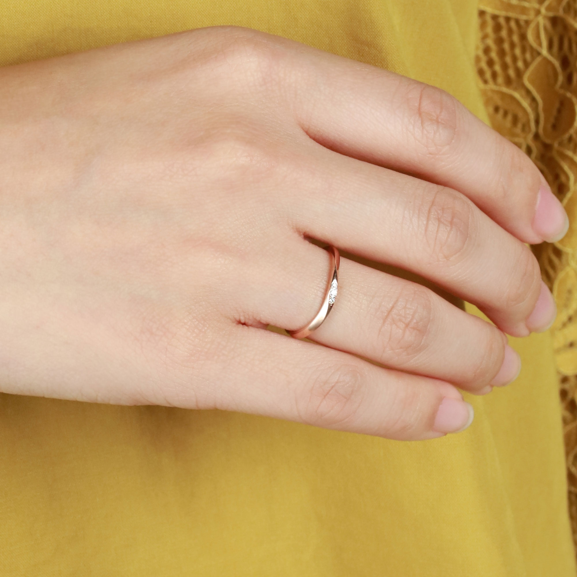 ひねりを加えたウェーブが美しいピンクゴールドのアームにダイヤモンドをあしらったリング。 ななめにセッティングしたダイヤモンドとピンクゴールドのツヤ感が手元をエレガントに見せてくれそう。 飽きのこないベーシックなデザインは、コーディネートを選ばずいつでも肌身離さず着けられてデイリー使いやペアアイテムにもおすすめです。 ▼カラーバリエーションはこちらイエローゴールド / ホワイトゴールド ▼ペアアイテムはこちらホワイトゴールド ペアリング(Men's)K10WG ペアリング(Men's) ▼4月の誕生石ダイヤモンドのアイテムはこちら