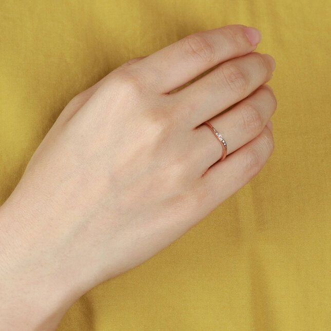 ななめに配したダイヤモンドとピンクゴールドのツヤ感が手元をエレガントに見せてくれそう。