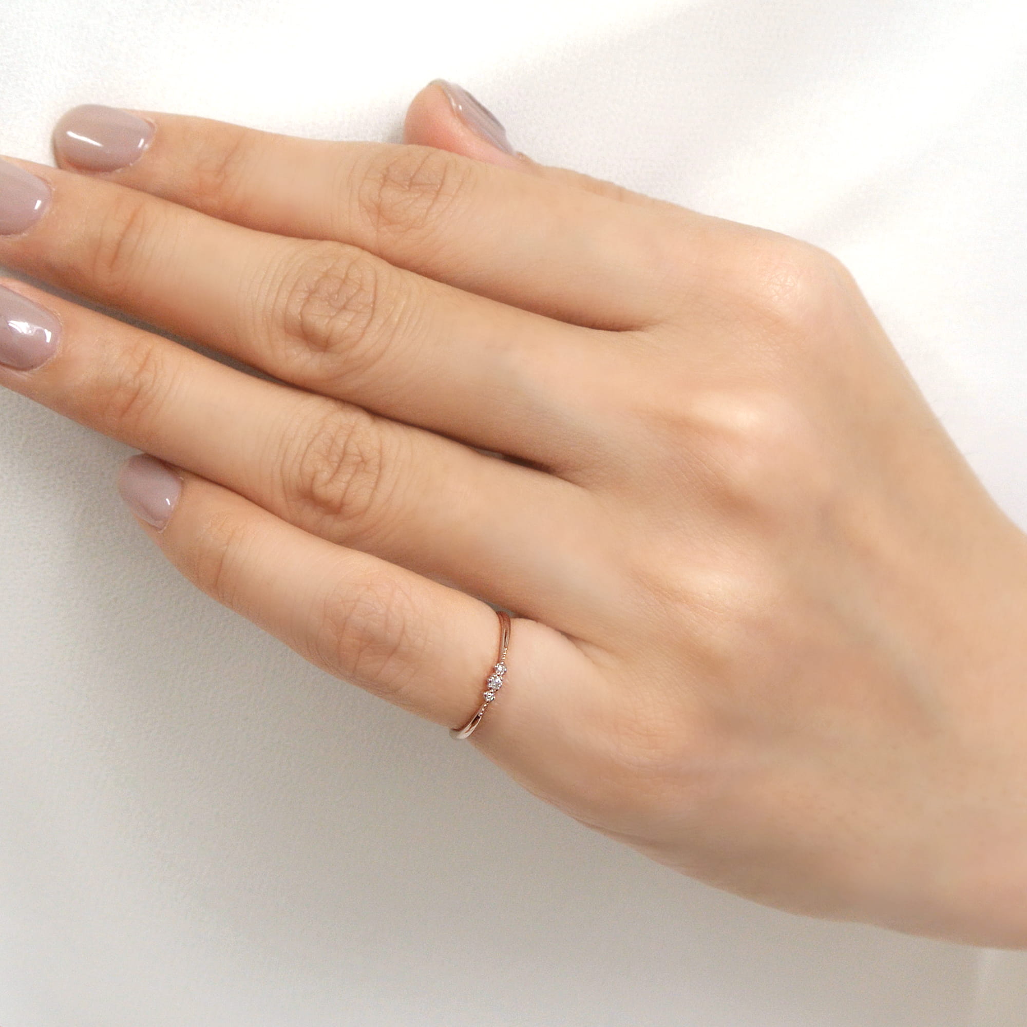 ダイヤモンドが3石輝くシンプルなデザインのピンキーリング。