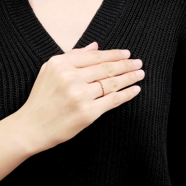 流れるようなラインが指を長く美しく見せてくれるリング。