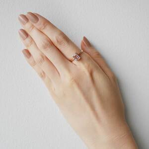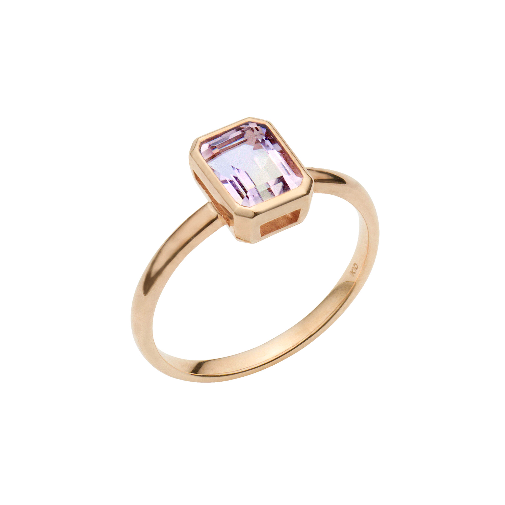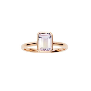 石の輪郭を際立たせるピンクゴールドと、淡く透明感のあるアメトリンの組み合わせは、肌なじみがよく上品な印象を与えてくれるアイテムです。