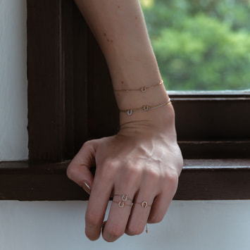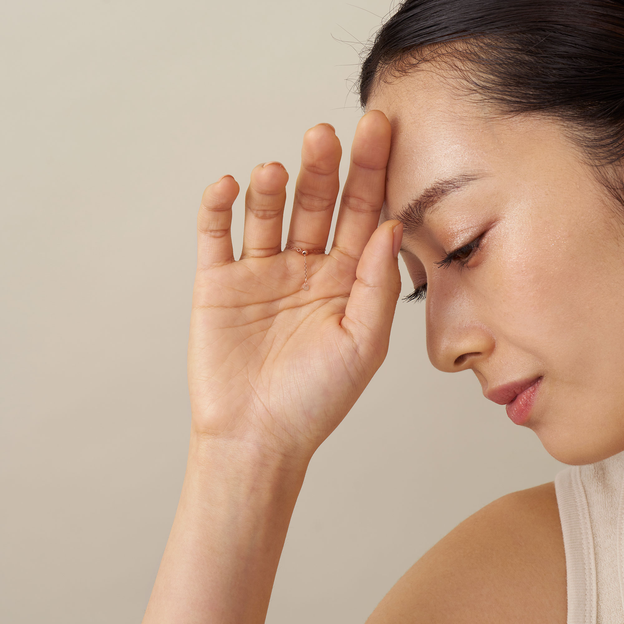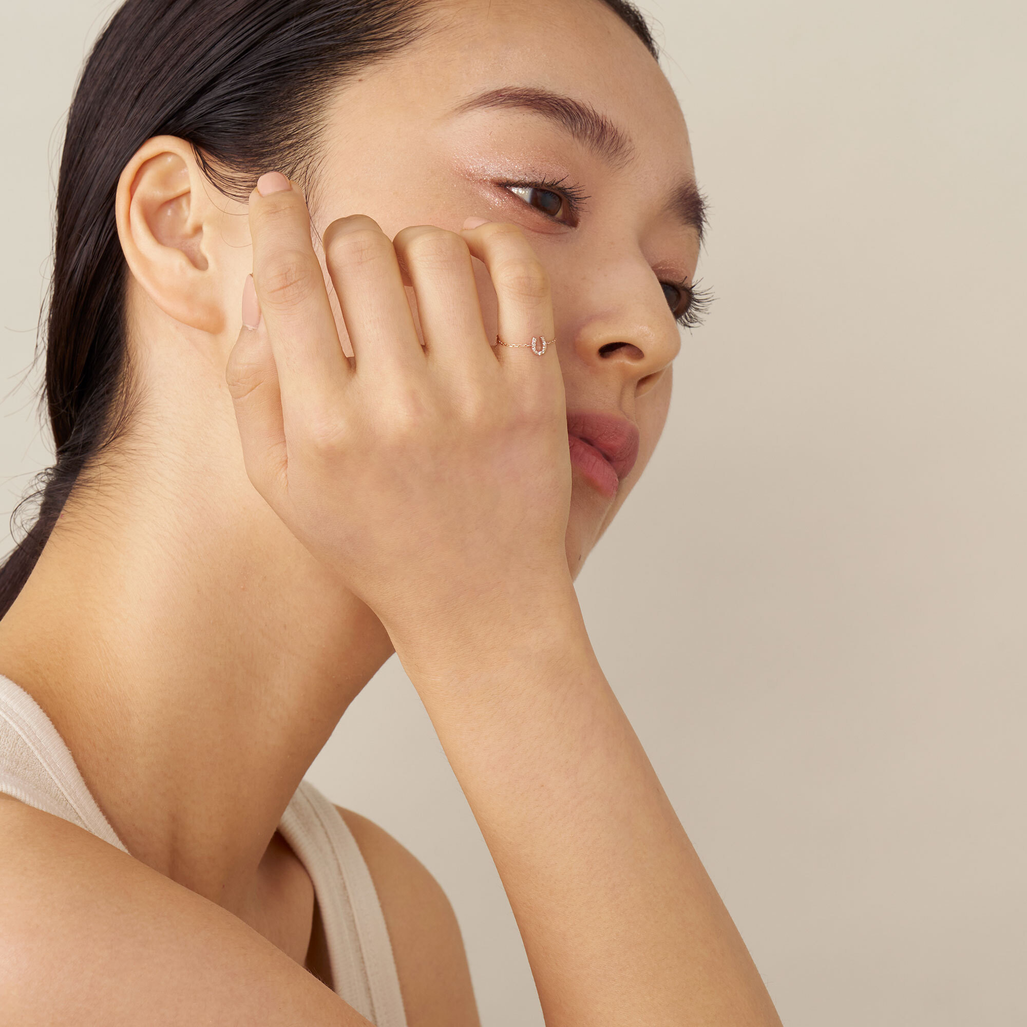 スライドアジャスター付きのチェーンリングは、その日の気分や組み合わせるジュエリーによって着ける指を変えられるフレキシブルさもポイント。
