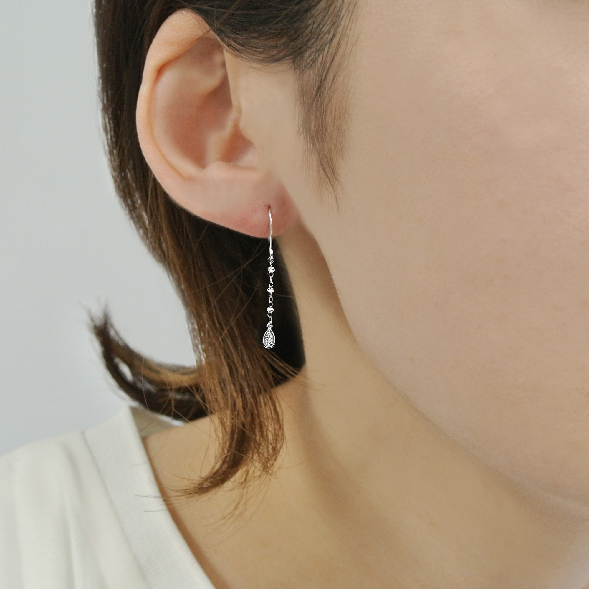 連なるカットビーズの先にしずくパーツのダイヤモンドが煌きます。