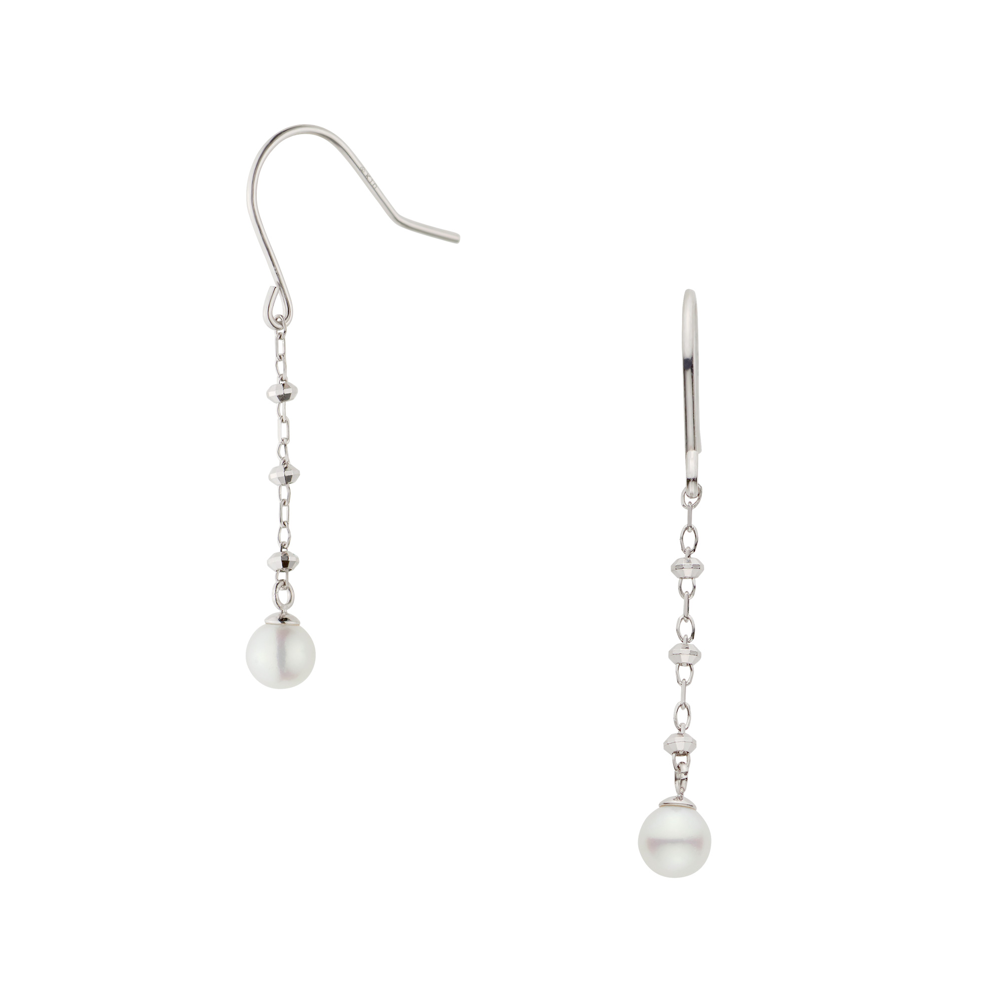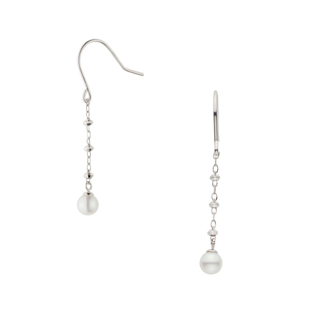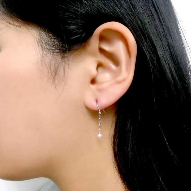 チェーンにあしらったホワイトゴールドのカットパーツがパールのやわらかな輝きを引き立てながら、動きに合わせてきらめきます。