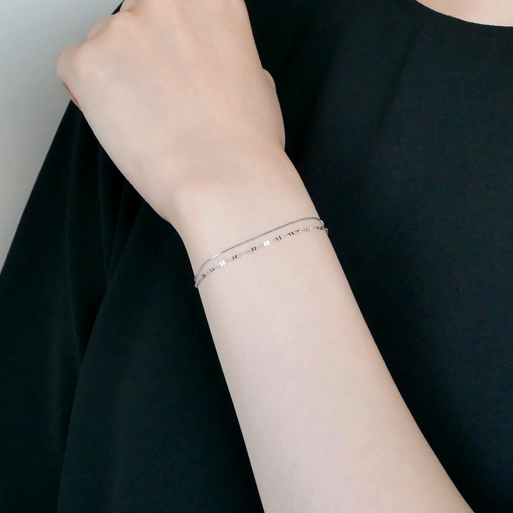 チェーンが動くたびサラサラときらめき、手元に華やかさをプラスします。