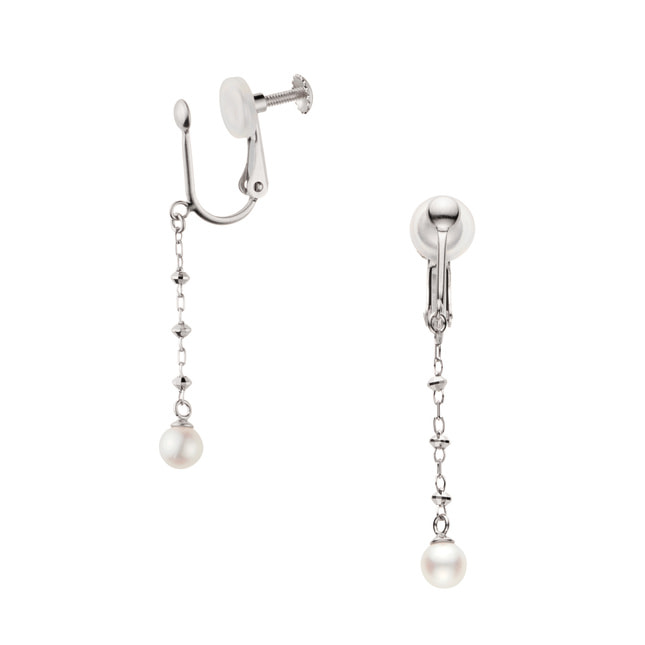 チェーンにあしらったホワイトゴールドのカットパーツが、パールのやわらかな輝きを引き立てながら、さりげなくきらめきをプラス。