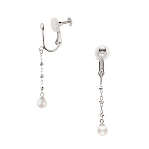 チェーンとカットパーツの繊細なきらめきと、パールの柔らかな輝きが美しいイヤリング。