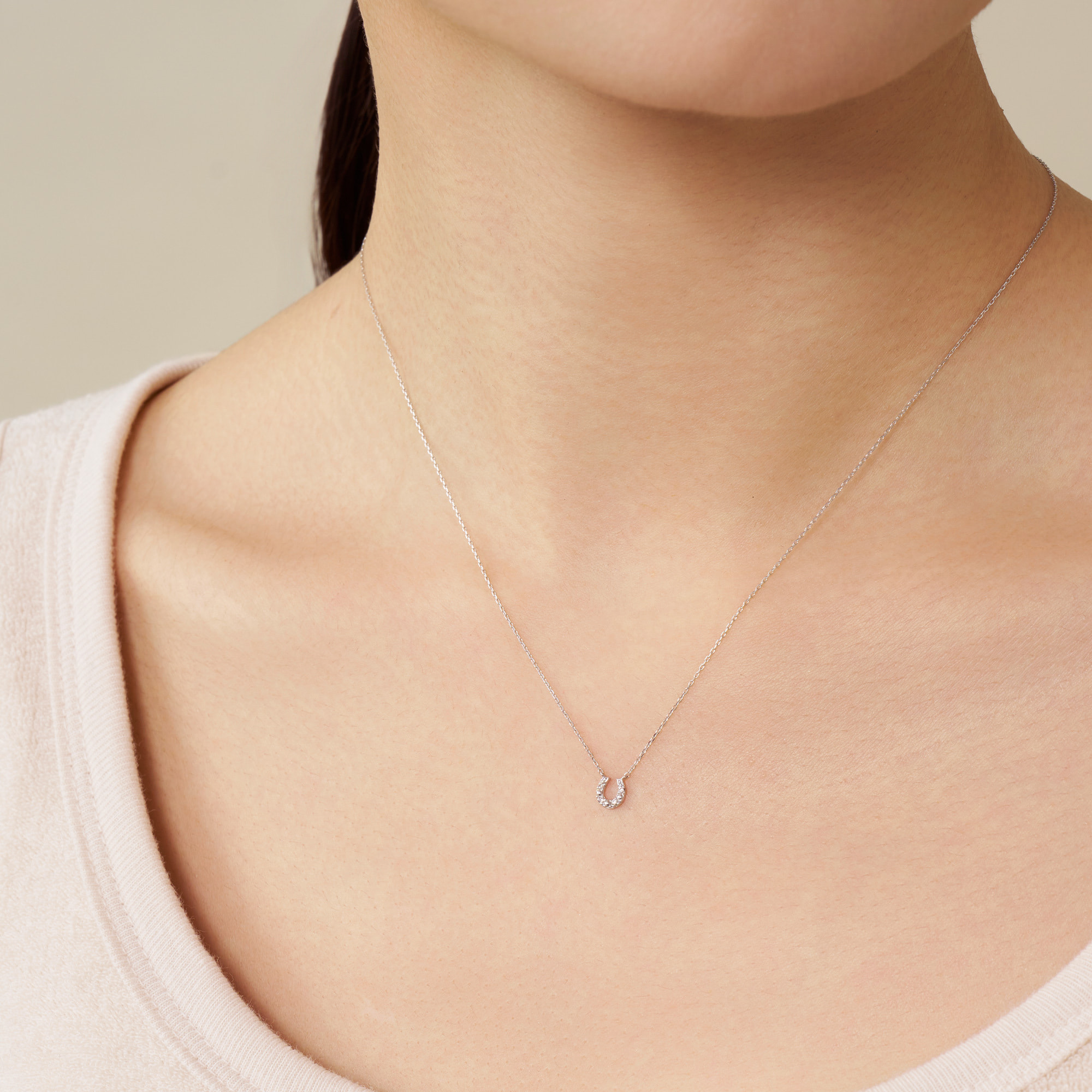 4石のダイヤモンドをあしらった馬蹄のモチーフネックレス。
