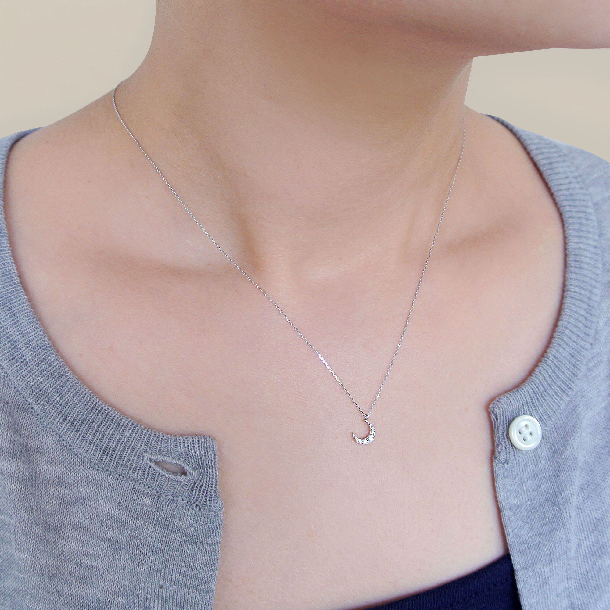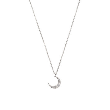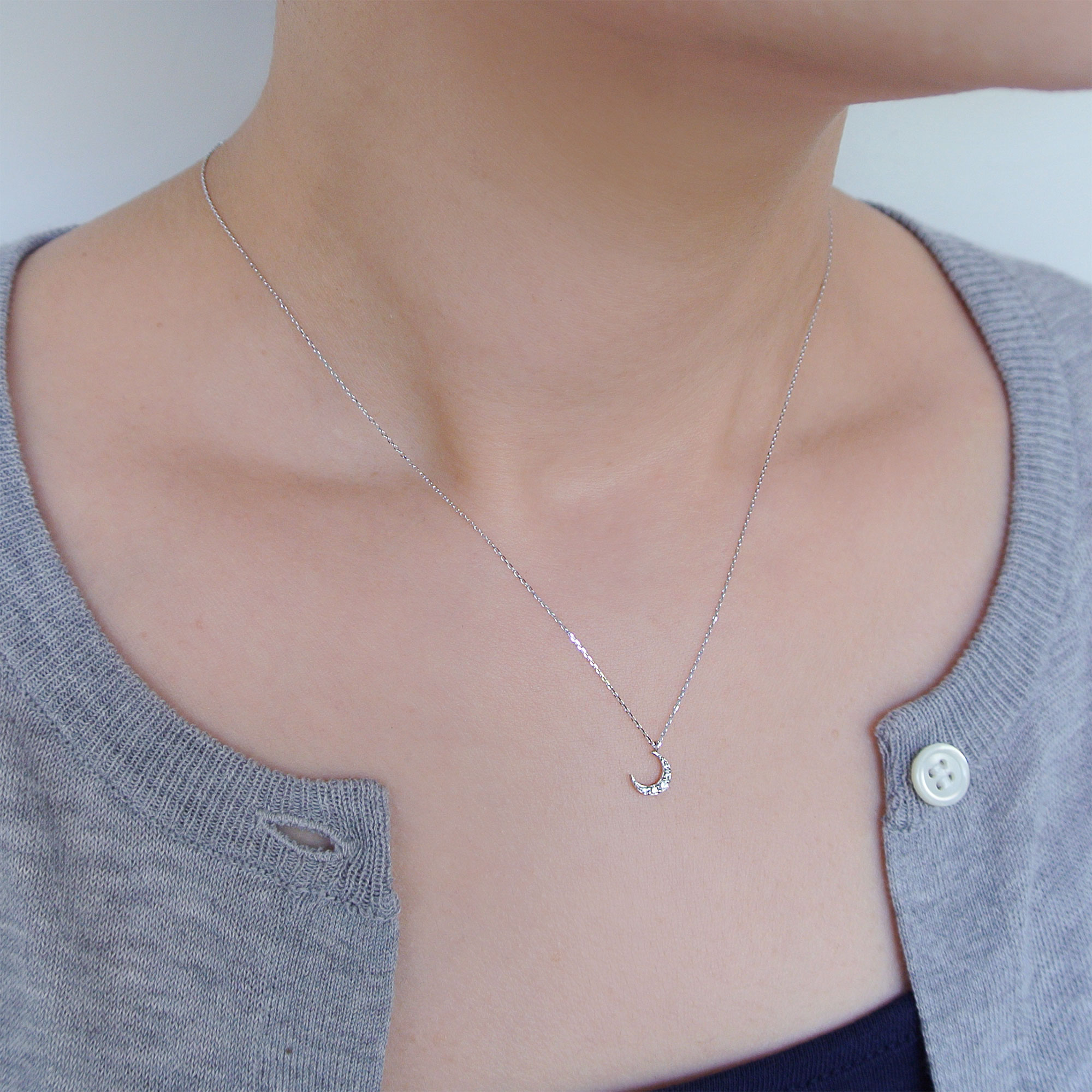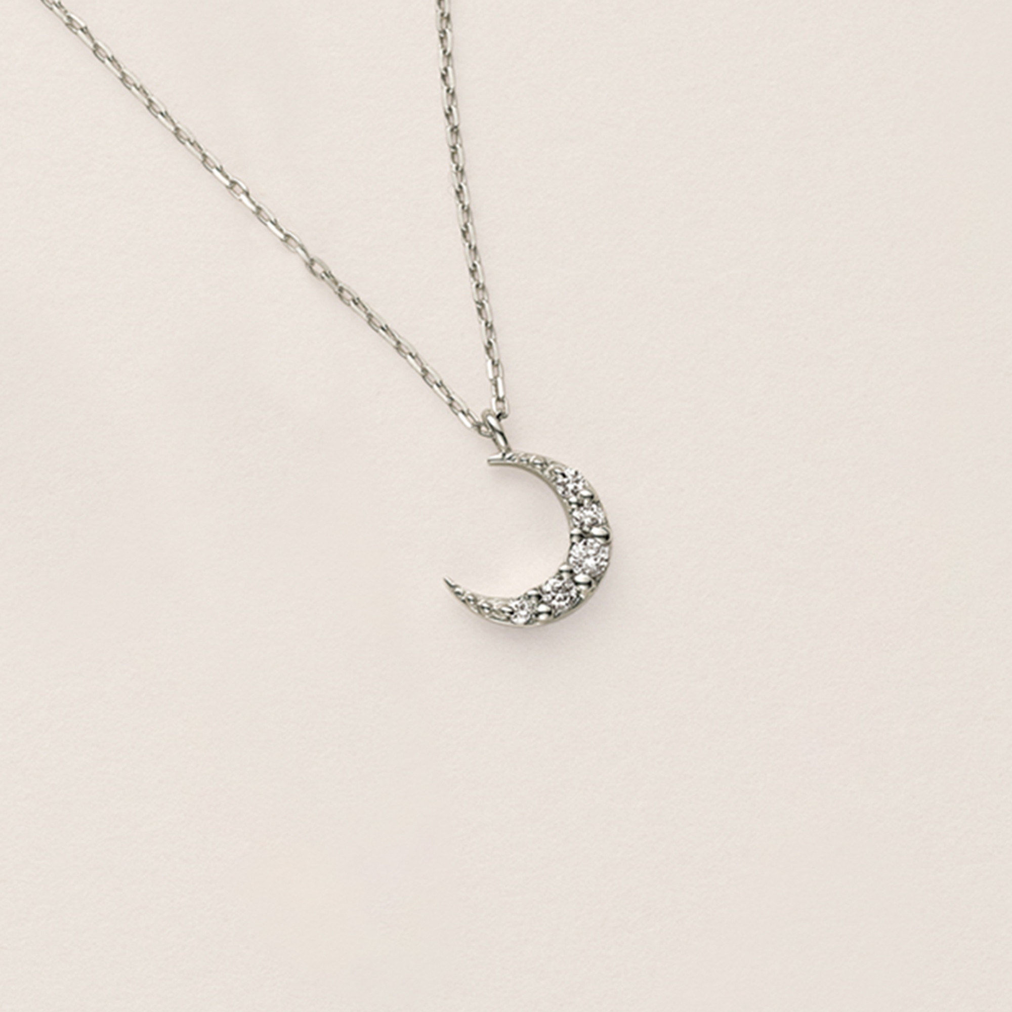 ダイヤモンドできらめかせた、ちょっぴり神秘的なムーンモチーフのネックレス。