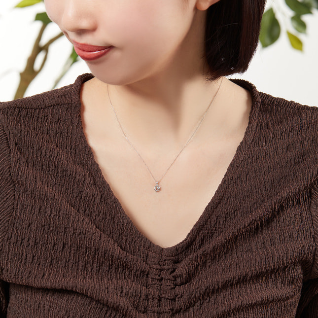 水をたたえたような輝きのホワイトトパーズをそっと囲むのは、小さなホワイトトパーズがとめられた三日月。 三日月の上で星のように輝く1粒はダイヤモンドです。 輝きの違う2種類の石が、胸元に透明感と明るさをプラスし、毎日のコーディネートをアップグレードしてくれそう。 軽やかで華やかなネックレスです。 ▼カラーバリエーションはこちらピンクゴールド▼4月の誕生石 ダイヤモンドのアイテムはこちら▼11月の誕生石 トパーズのアイテムはこちら