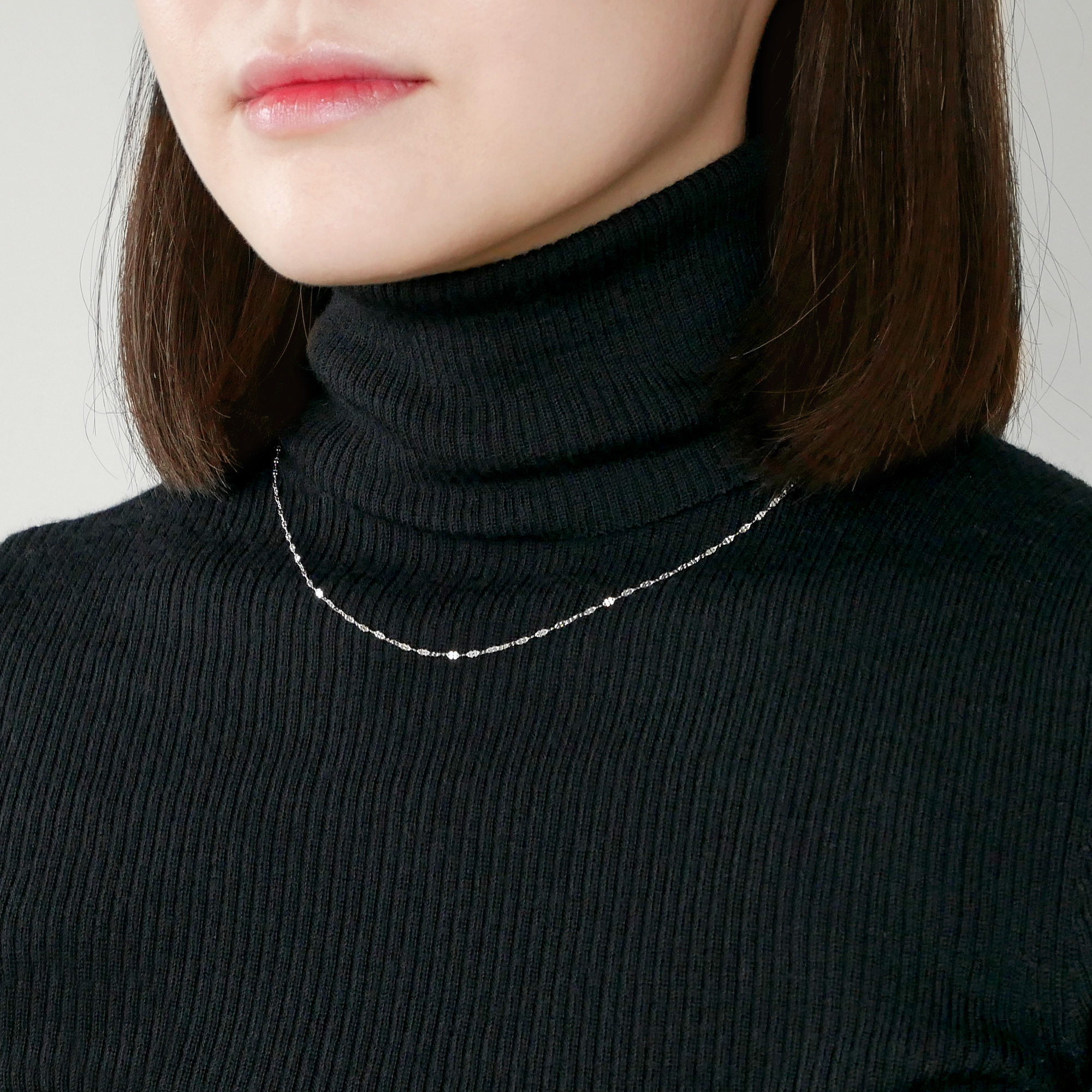 45cmと少し余裕のある長さでお洋服の上に重ねるのもおすすめ。