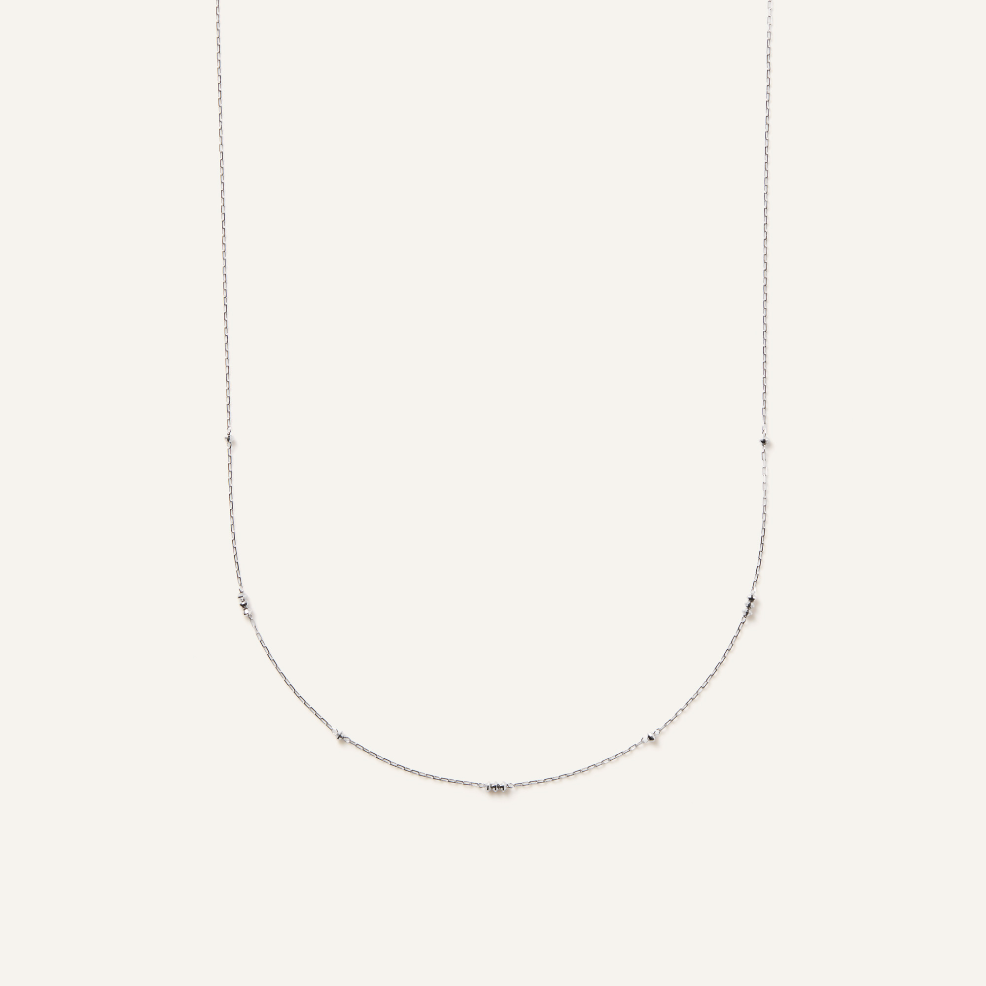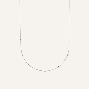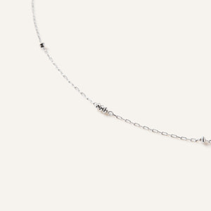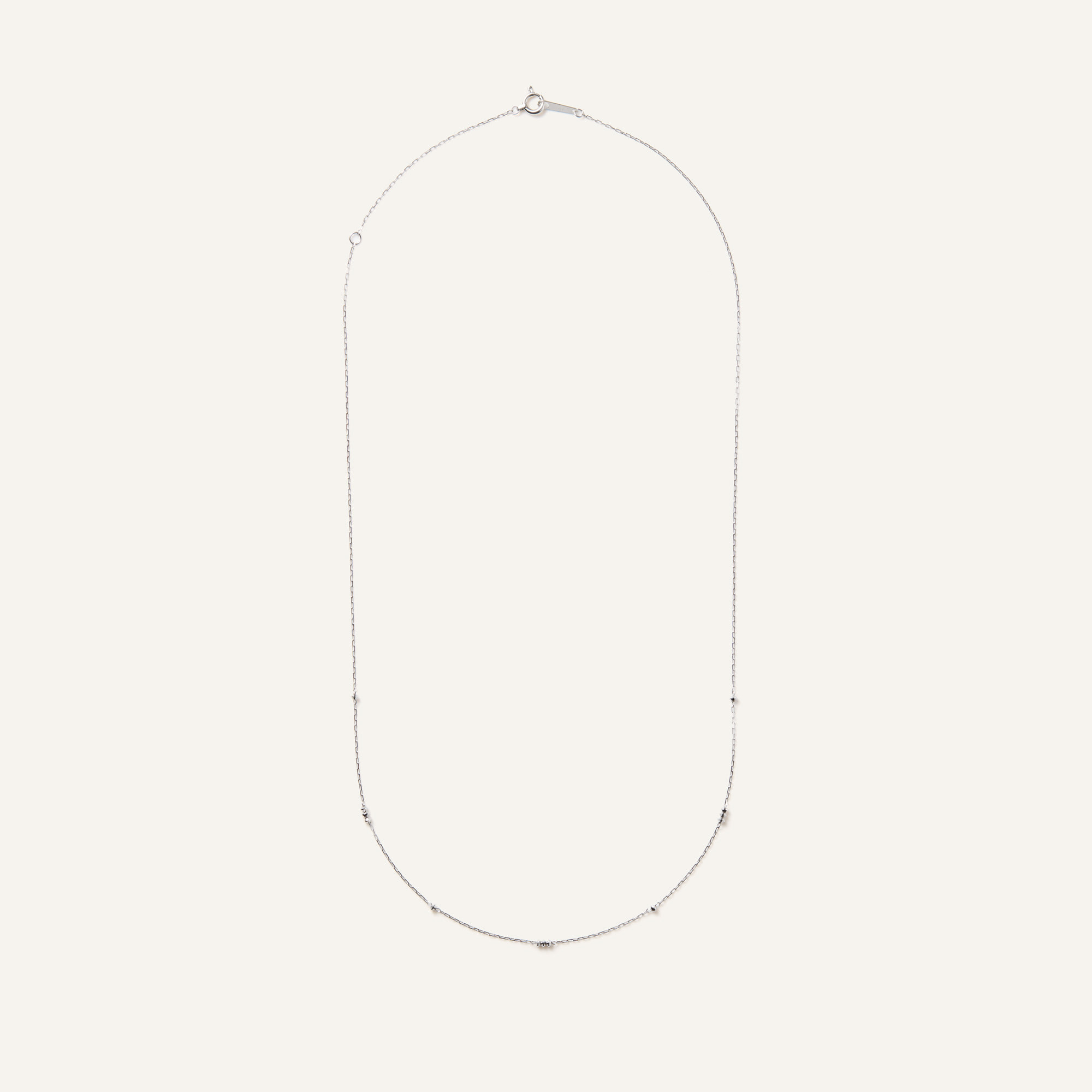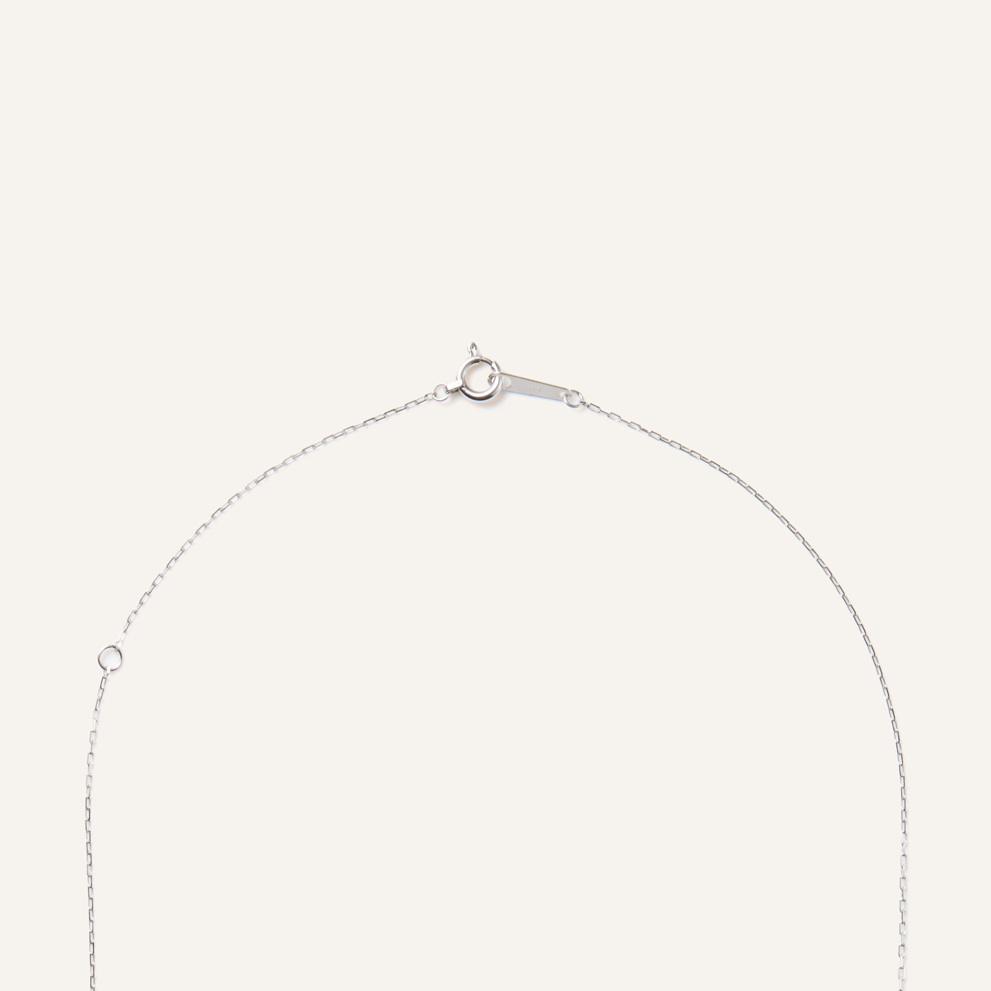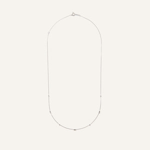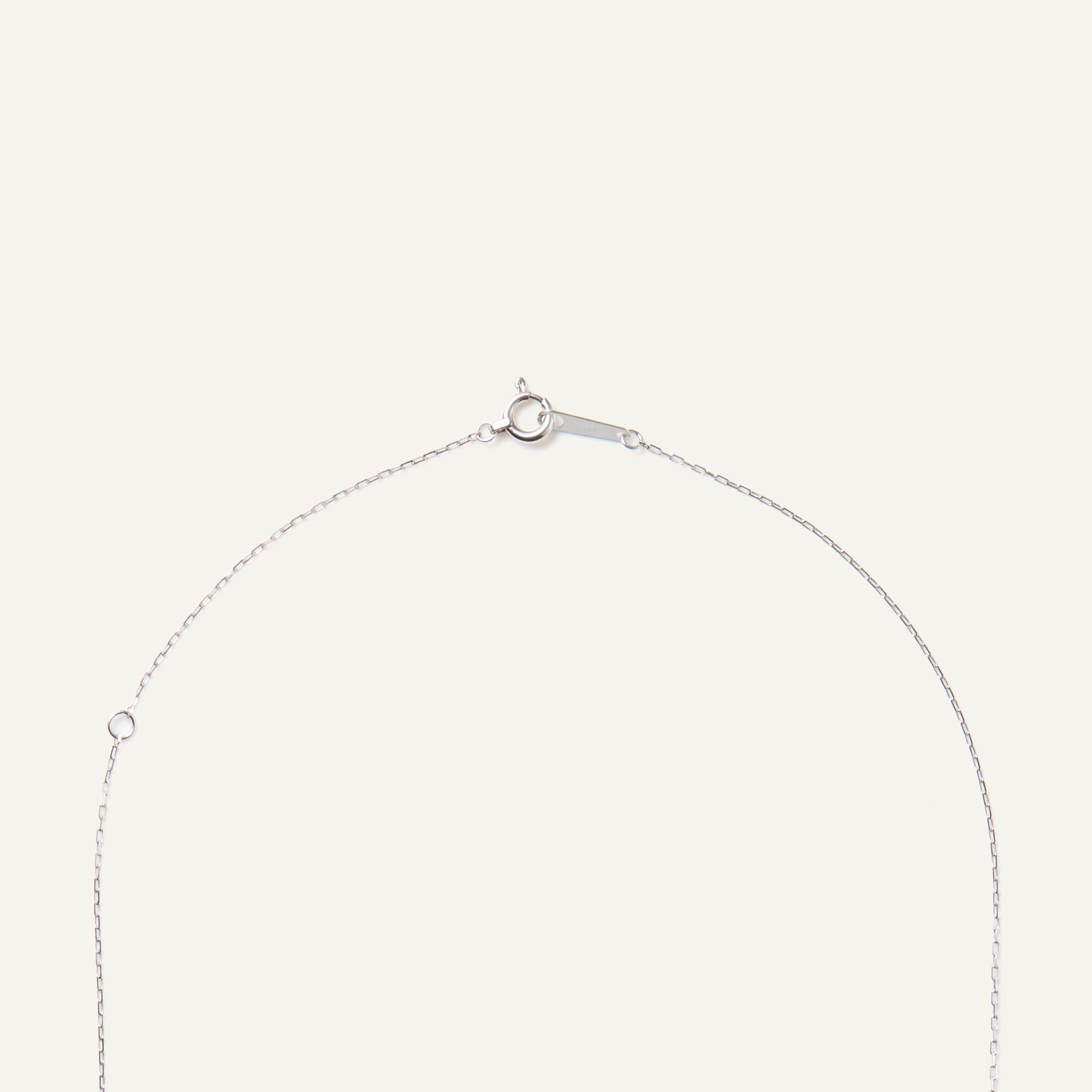 ホワイトゴールドの華奢なチェーンが上品な印象で、カジュアルスタイルからキレイめまで幅広いスタイルに対応できます。