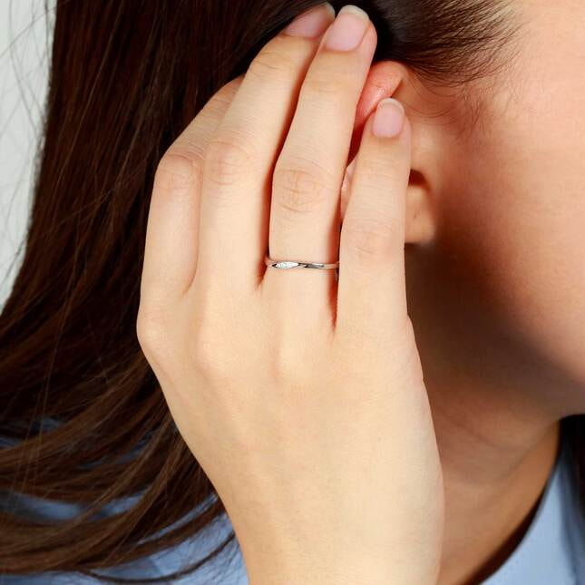 ひねりを加えたウェーブが美しいホワイトゴールドのアームにダイヤモンドをあしらったペアリング。 ななめに配したダイヤモンドとホワイトゴールドのツヤ感が手元をエレガントに見せてくれそう。 飽きのこないベーシックなデザインは、コーディネートを選ばずいつでも肌身離さず着けられてデイリー使いにおすすめです。 ▼カラーバリエーションはこちらイエローゴールド / ピンクゴールド ▼ペアアイテムはこちらホワイトゴールド ペアリング(Men's)ホワイトゴールド ペアリング マット加工(Men's) ▼4月の誕生石ダイヤモンドのアイテムはこちら