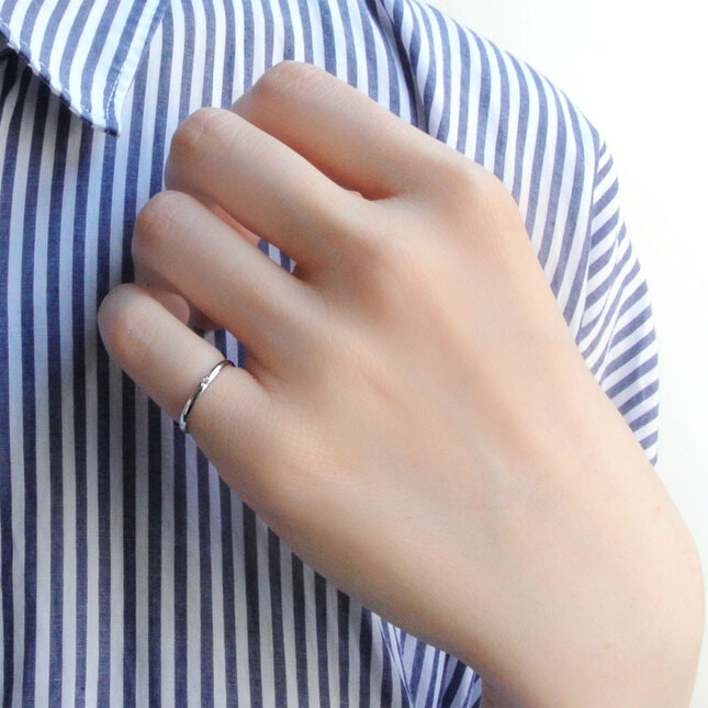 シンプルなピンキーリングは1本で着けるのはもちろん、重ね付けにもおすすめ。