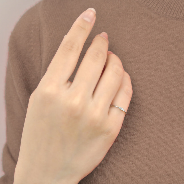 3石のダイヤモンドが輝くシンプルなデザインのピンキーリング。