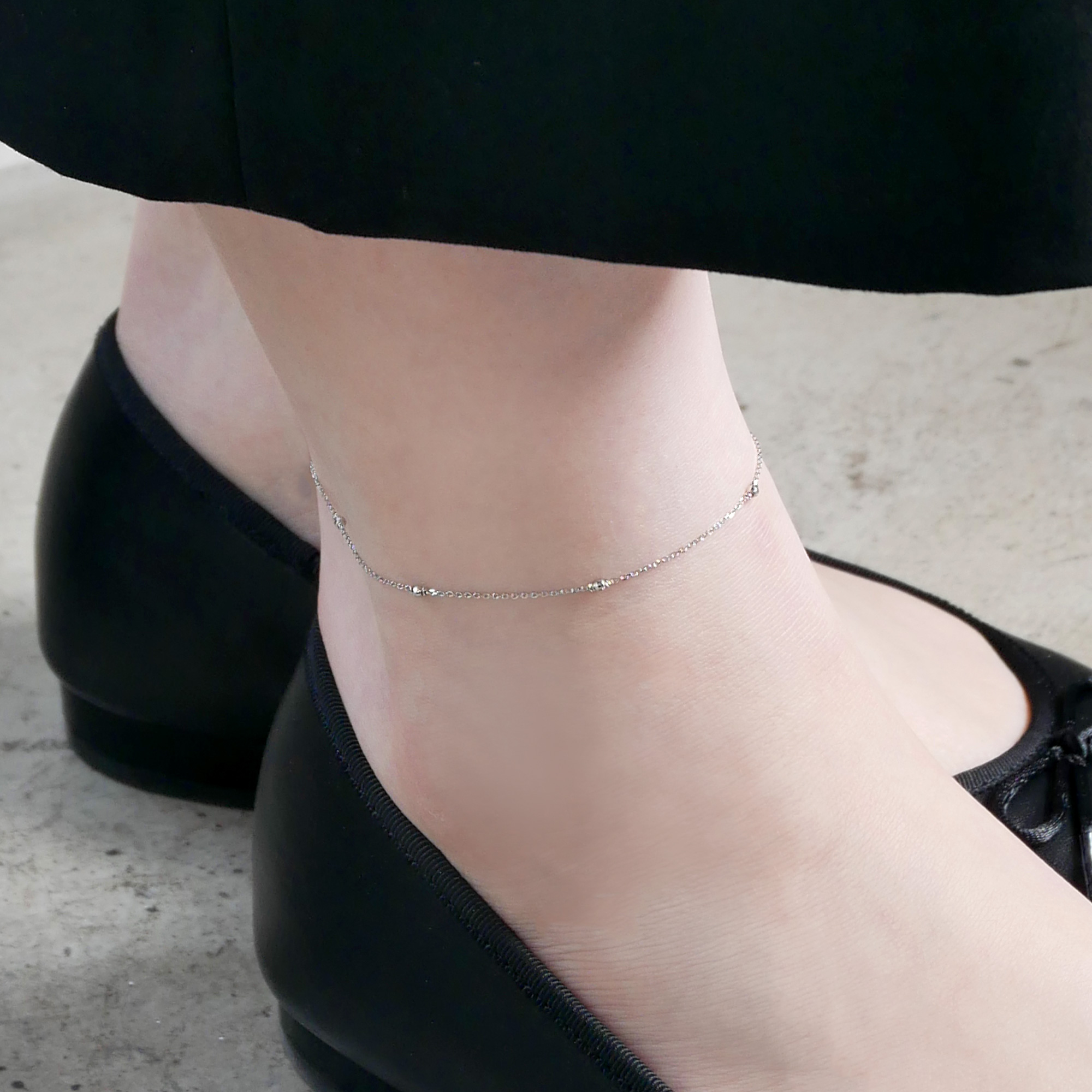 細身のチェーンにカットボールをあしらったステーションタイプのアンクレット。