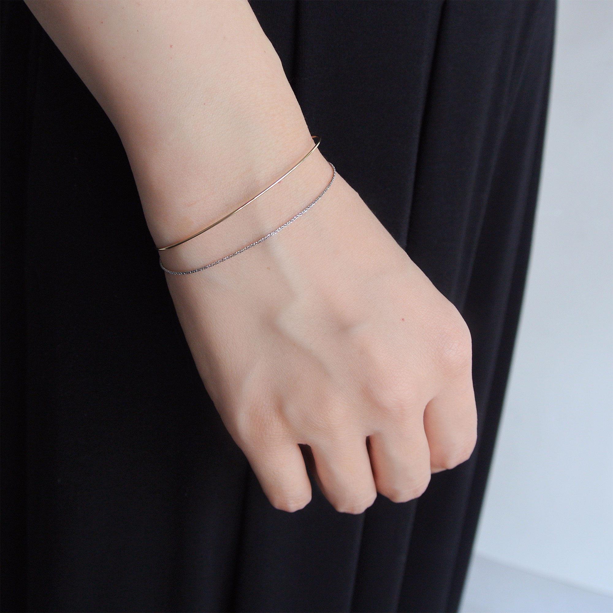華奢なバングルとブレスレットを重ね着けしているようなデザインが魅力的。