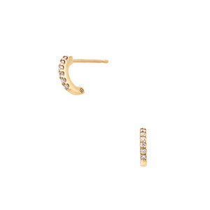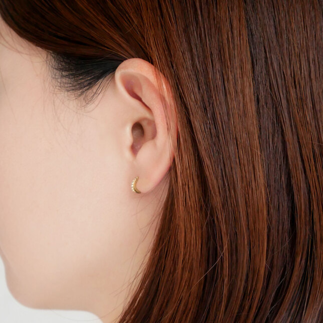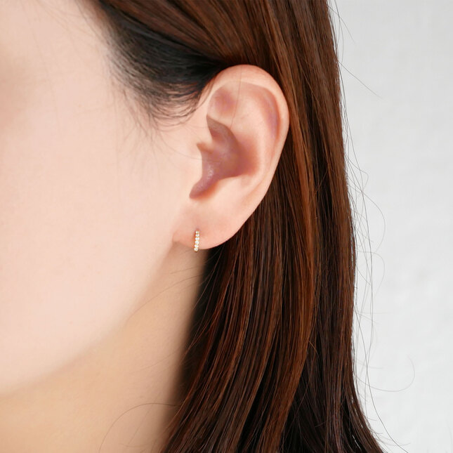 イエローゴールドのフープにダイヤモンドをあしらったベーシックなピアス。