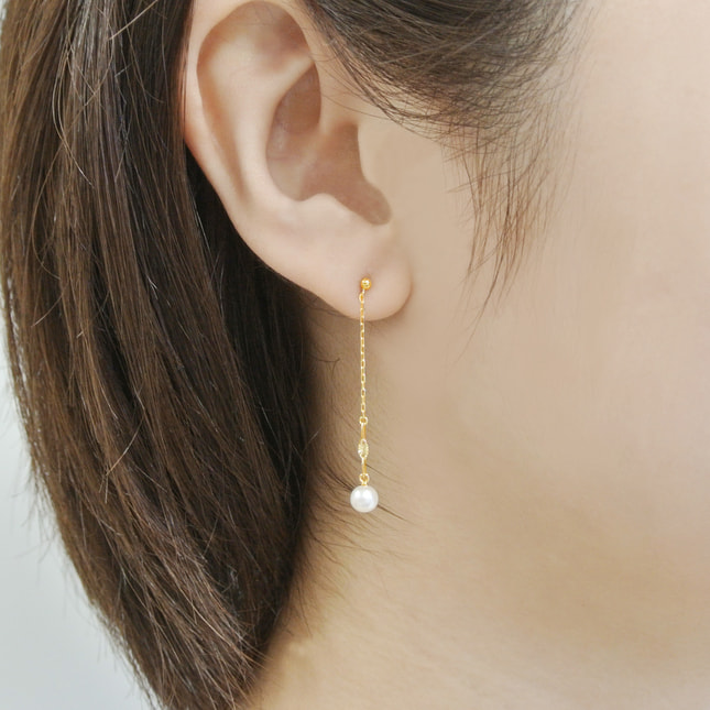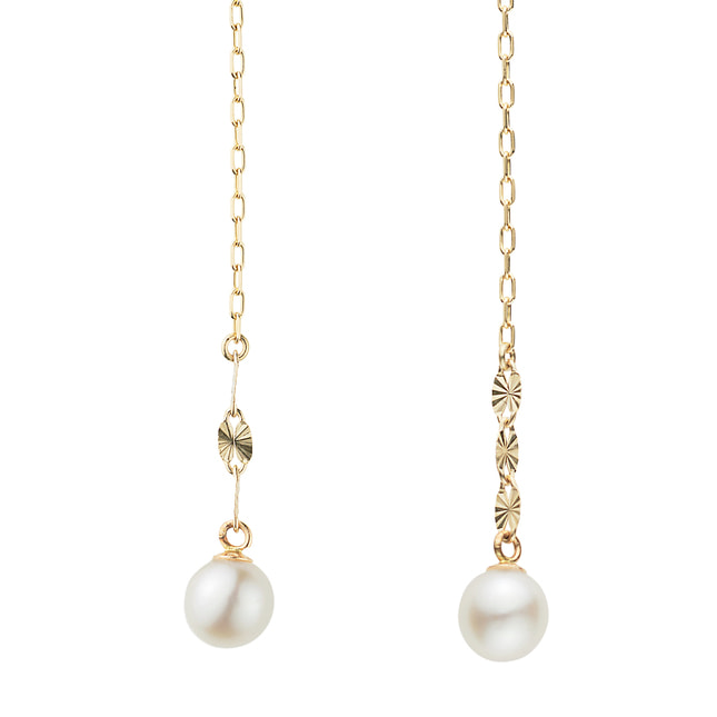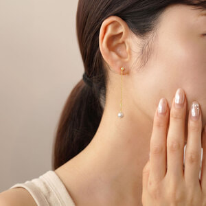 柔らかな光をまとう淡水パールがナチュラルな印象の揺れるピアス。