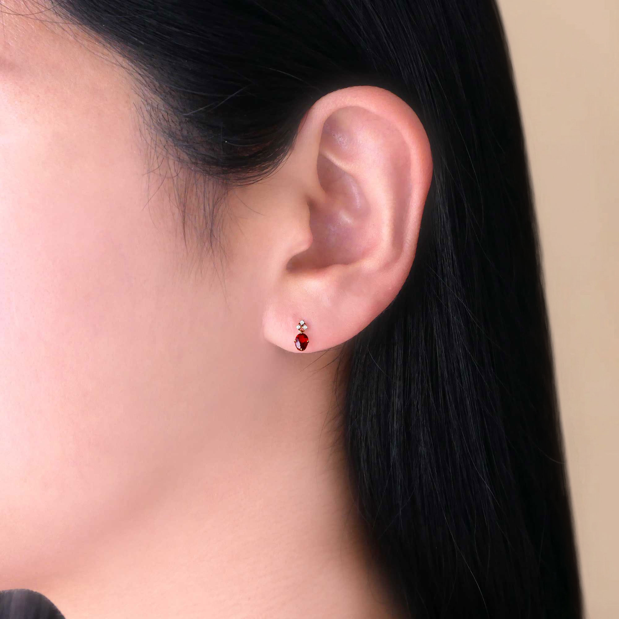 オーバルカットのガーネットが愛らしい印象のピアス。