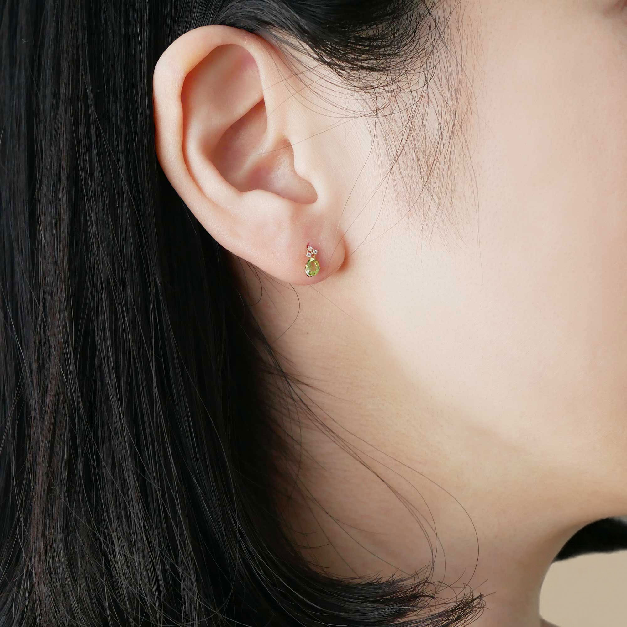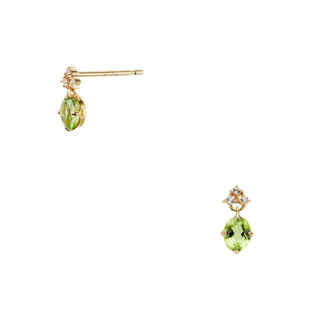 オーバルカットのペリドットが愛らしい印象のピアス。