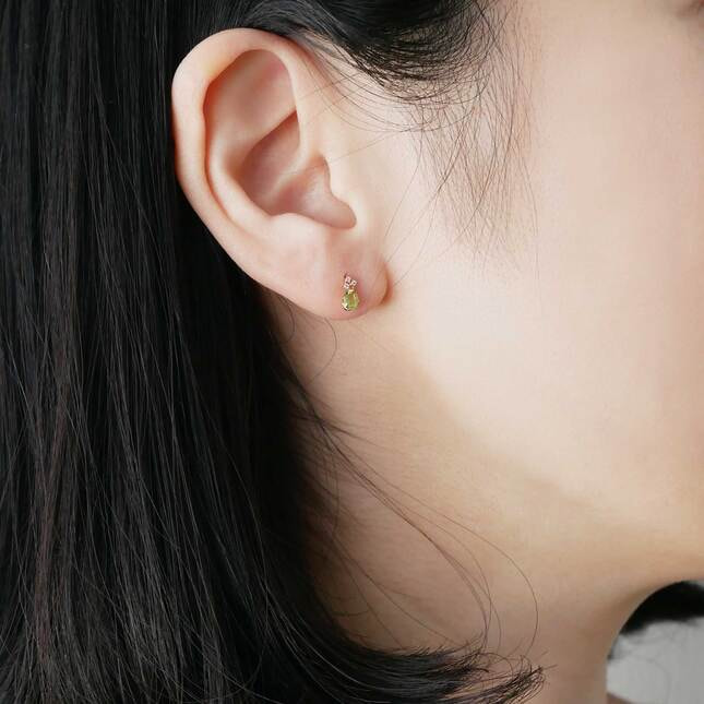 新緑のような鮮やかでみずみずしいペリドットは横顔を生き生きと明るく見せてくれます。