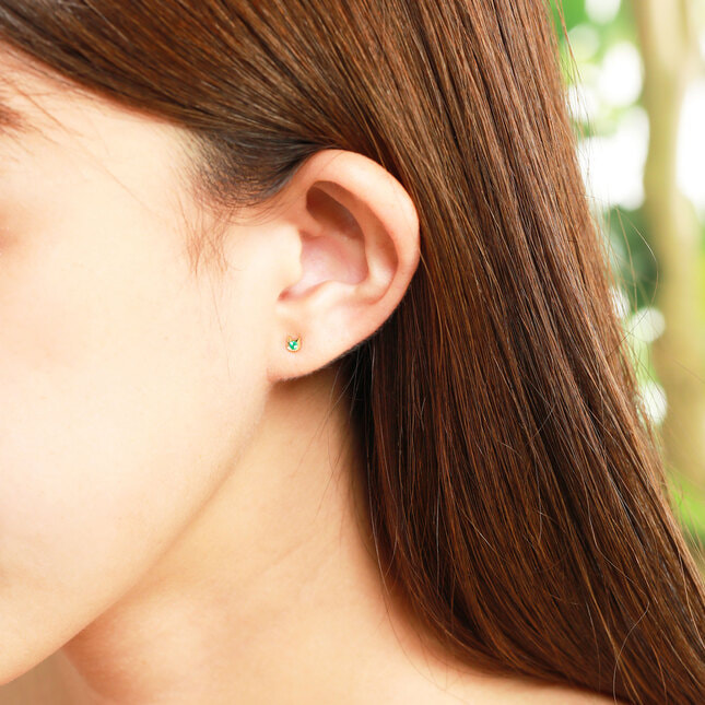 エメラルドのみずみずしいグリーンが耳元に爽やかさをプラス。