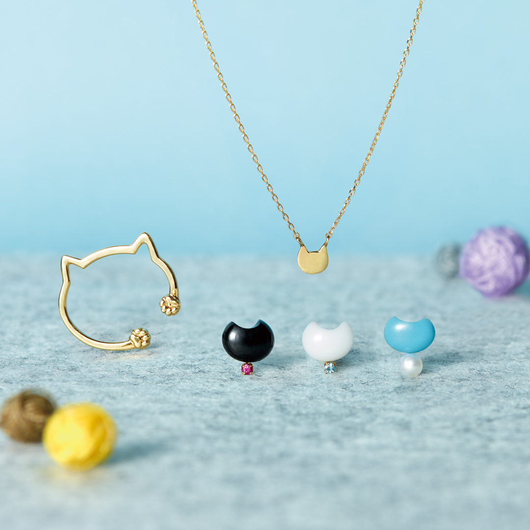 ねこモチーフのジュエリーはオリジナルねこポーチにお入れいたします。