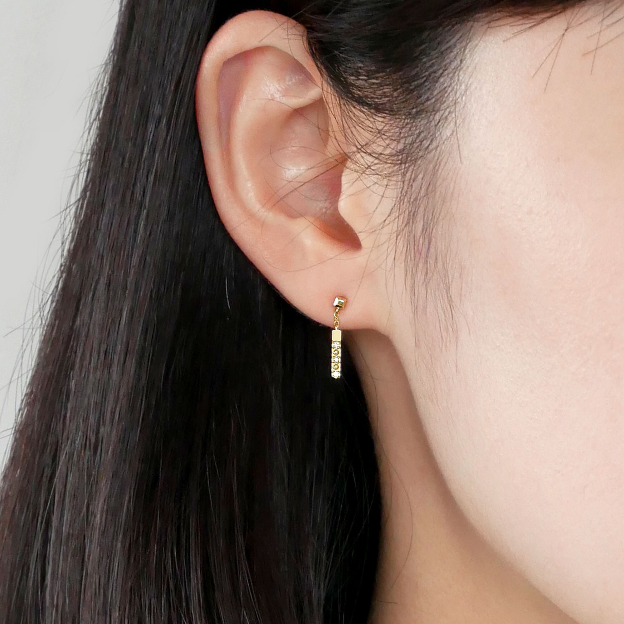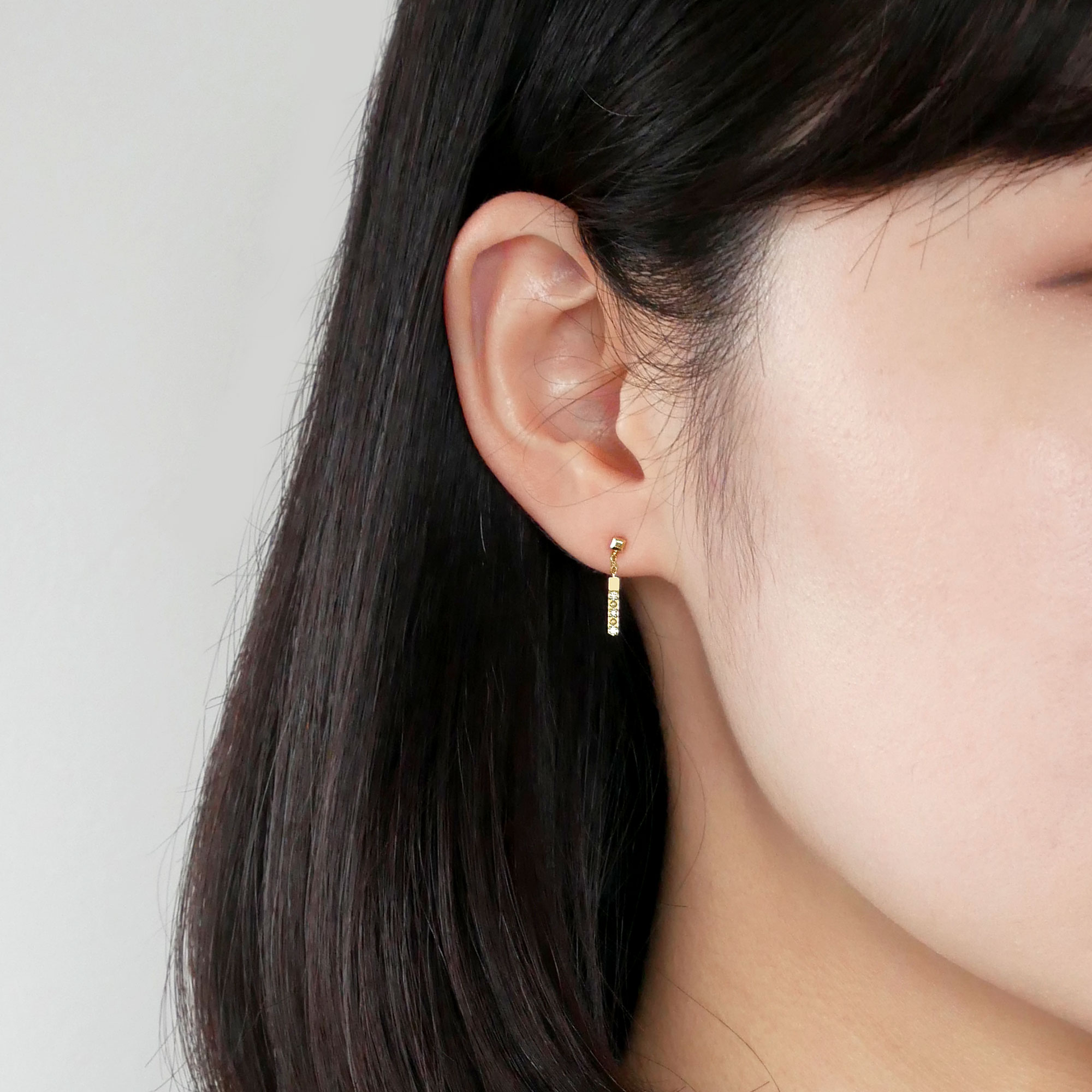 ダイヤモンドのきらめきとゴールドの華やかさを同時に楽しめるバーピアス。