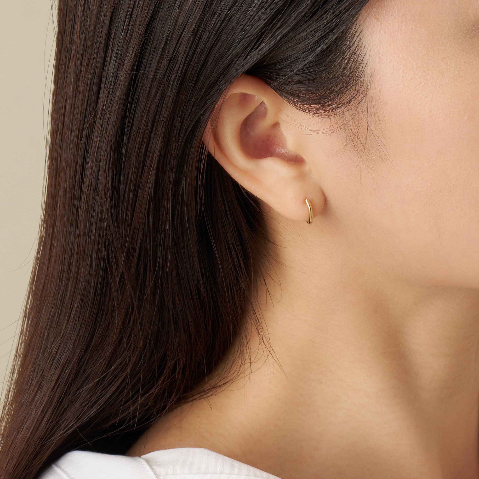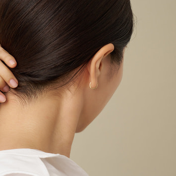 耳たぶに沿うようにキラリと輝く小さなサイズのピアスは、毎日のワードローブに加えたいアイテムです。