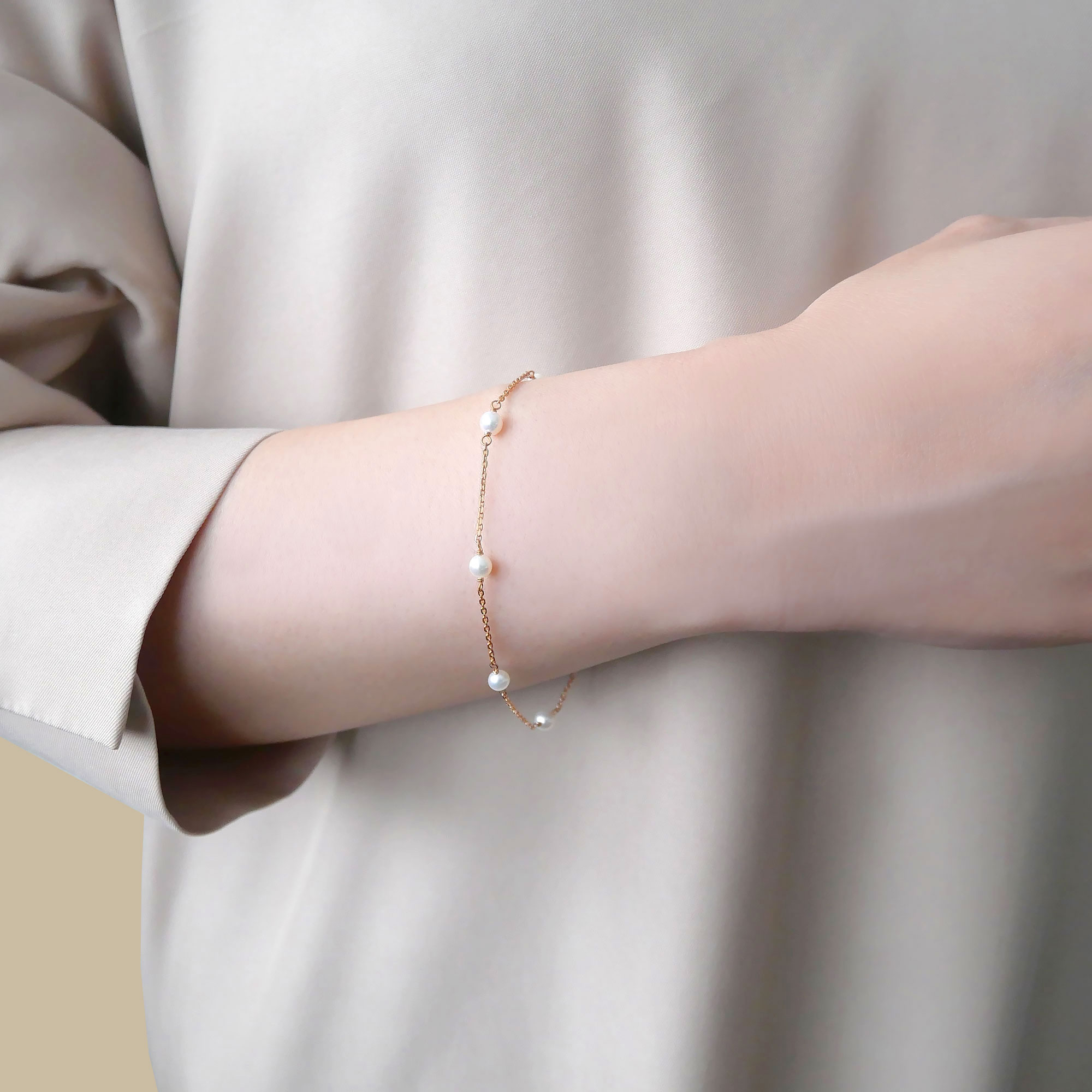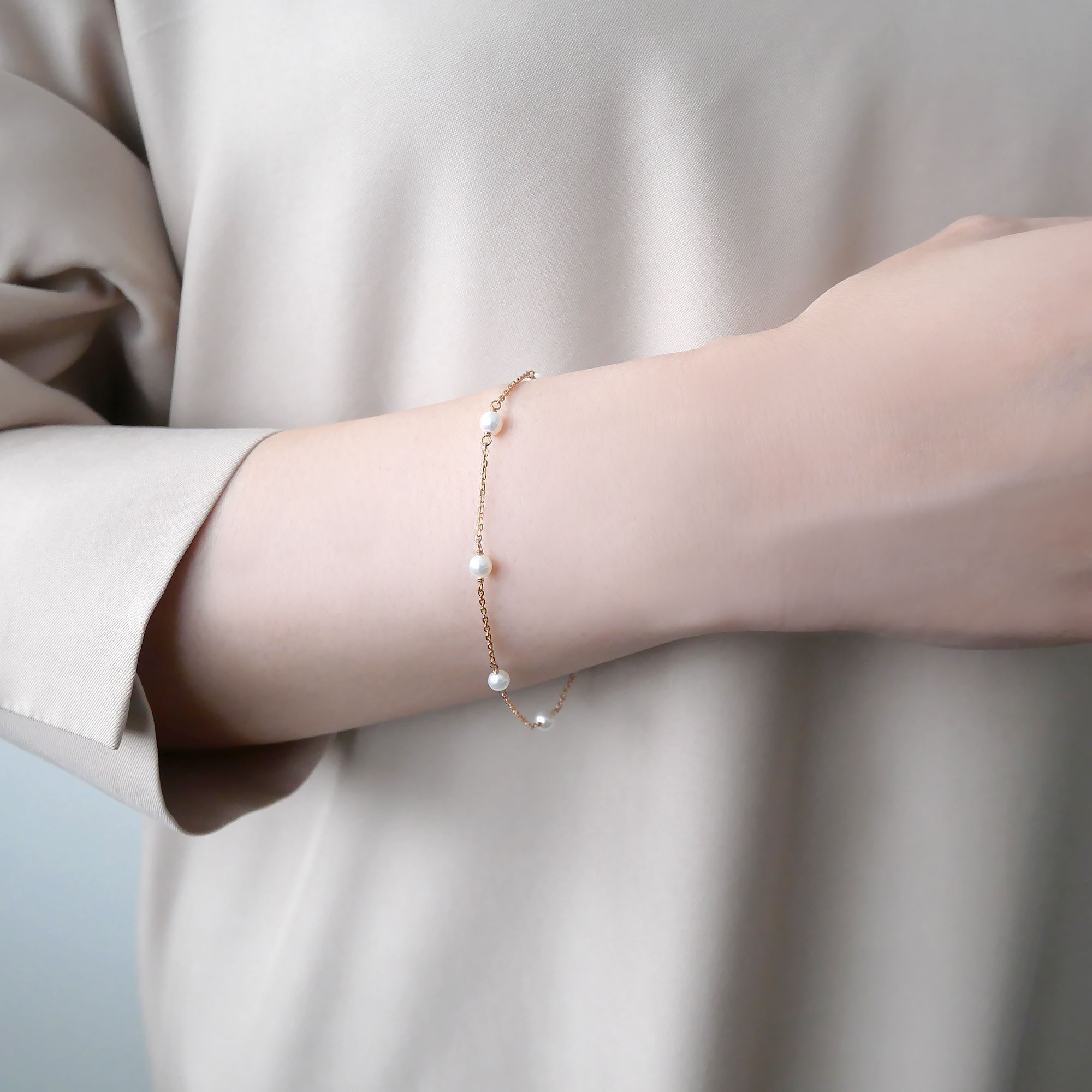 淡水パールの柔らかな光沢がフェミニンな手元を演出してくれるステーションタイプのブレスレット。