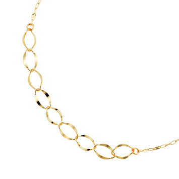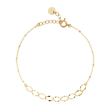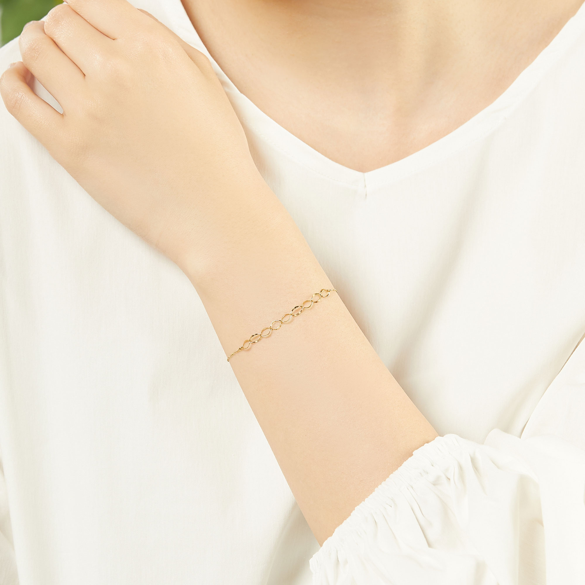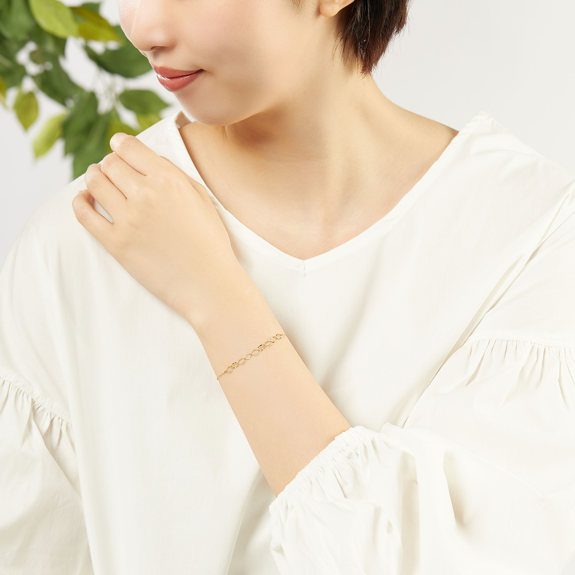 イエローゴールドのオーバルフォルムの連なりがポイントになった、存在感のあるブレスレット。