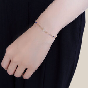 艶やかな地金が美しいイエローゴールドに、鮮やかなサファイアのビーズがアクセントに。