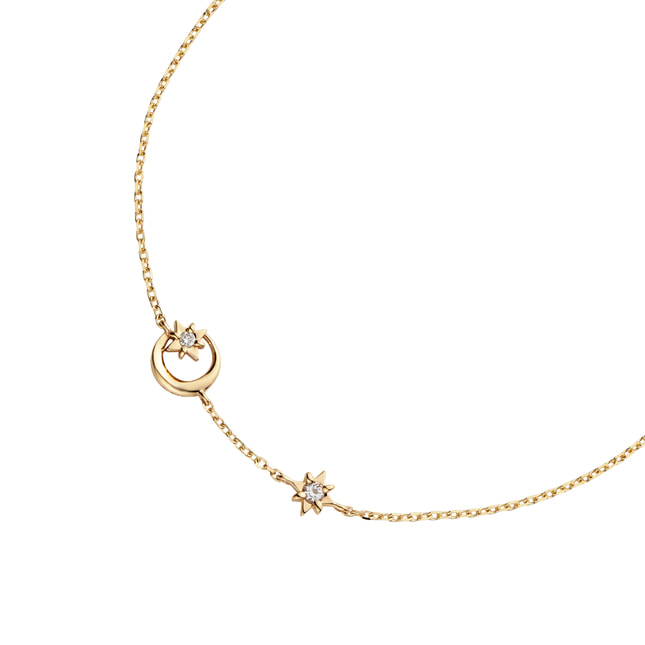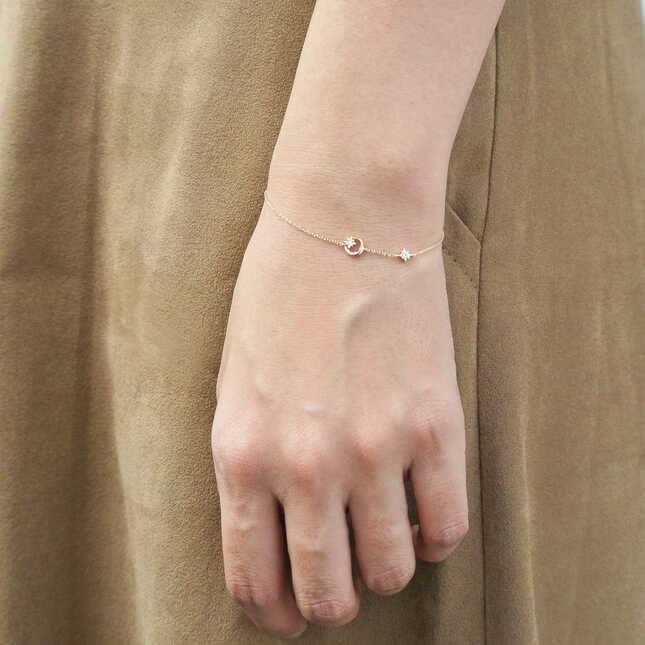 月の中にある星の中心にはダイヤモンドが輝き、華やかさときらめきをプラスします。