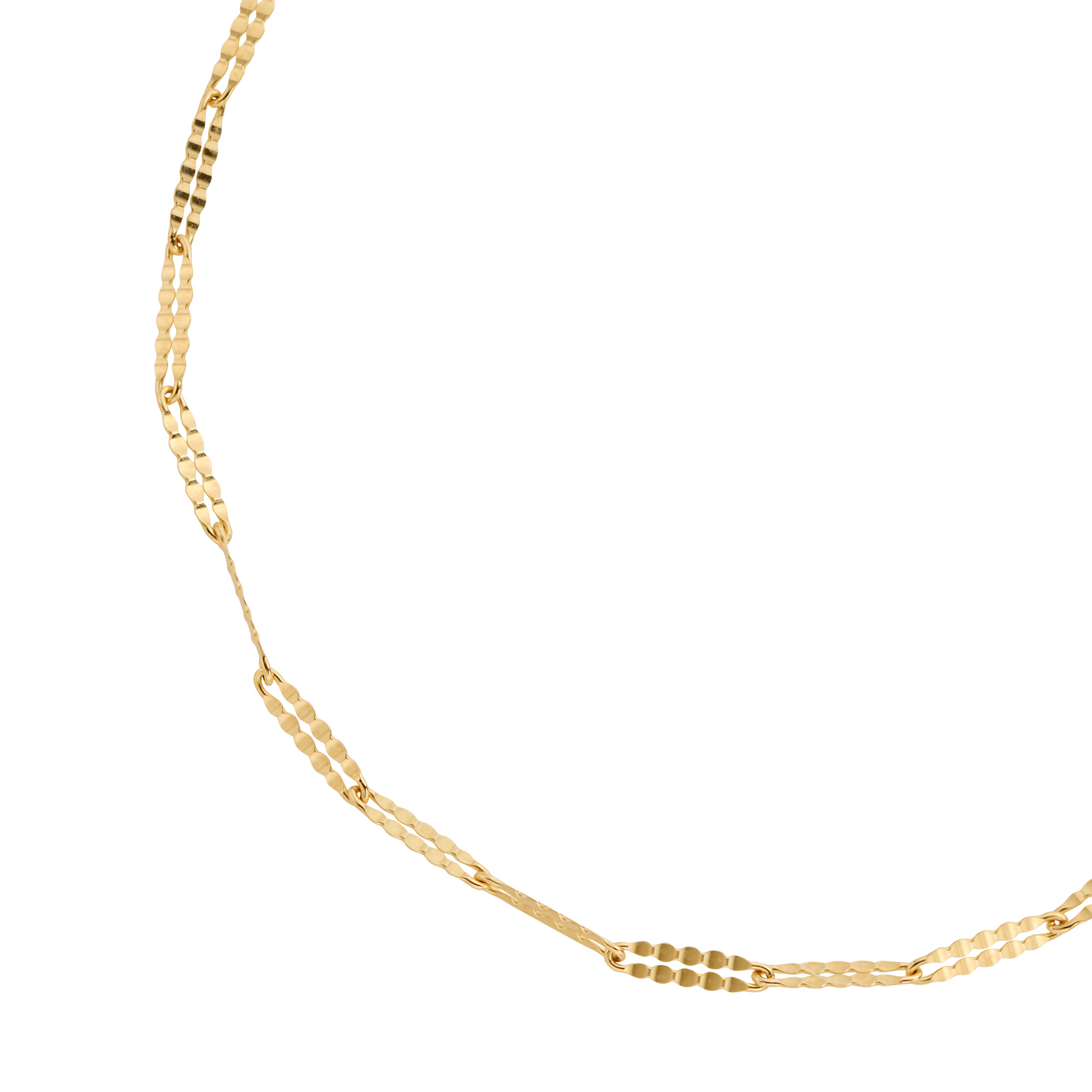 ストレートなシルエットで形はシンプルでありながら、チェーン表面にある多数のカット面が輝きを放ち存在感のあるデザインに。
