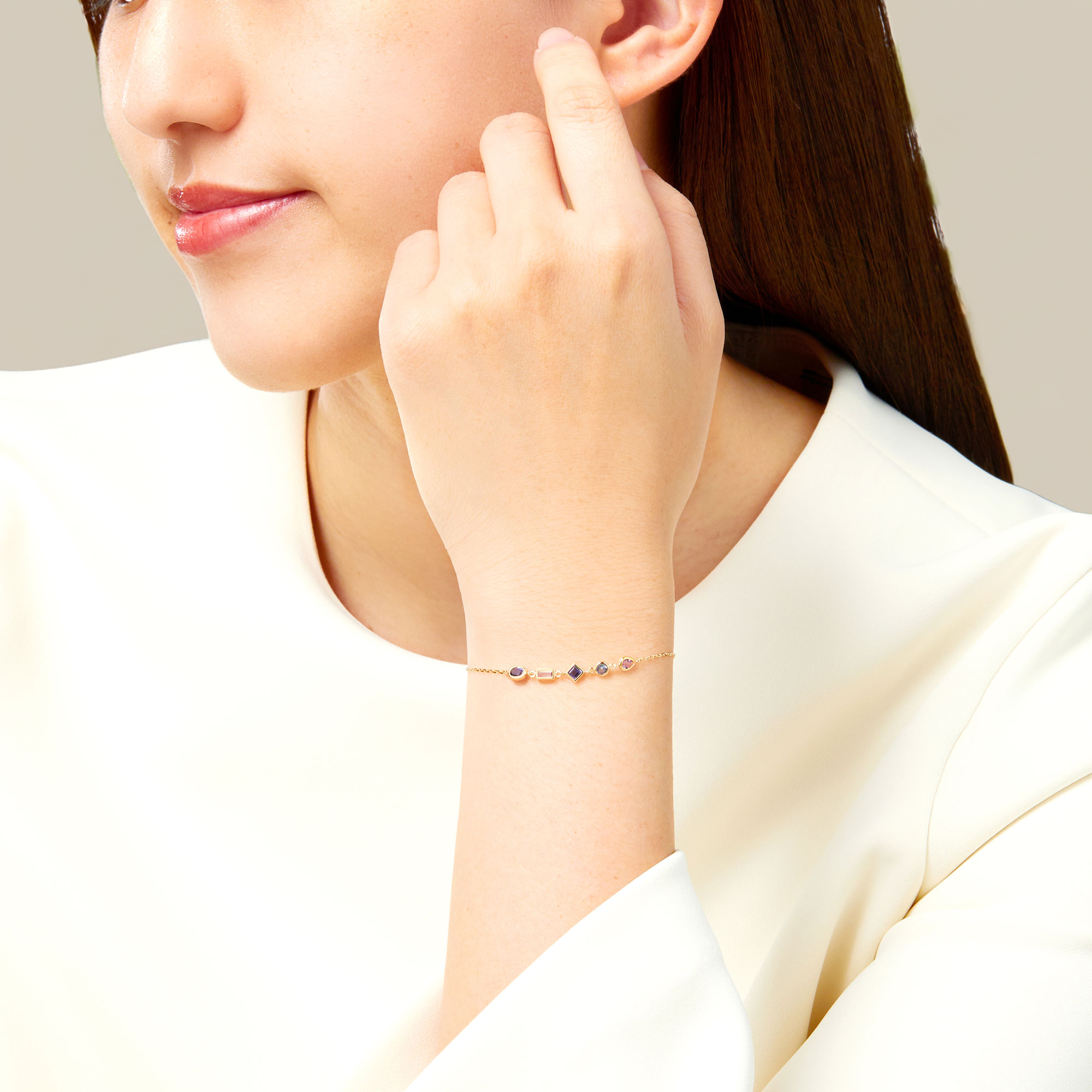 K10イエローゴールド、ライトアメシスト、アイオライト、タンザナイト