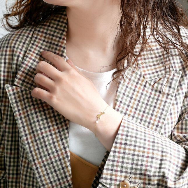 トップはプレート状でスキンジュエリーのように肌馴染み良く、いつも大切なねこちゃんを身近に感じられそう。