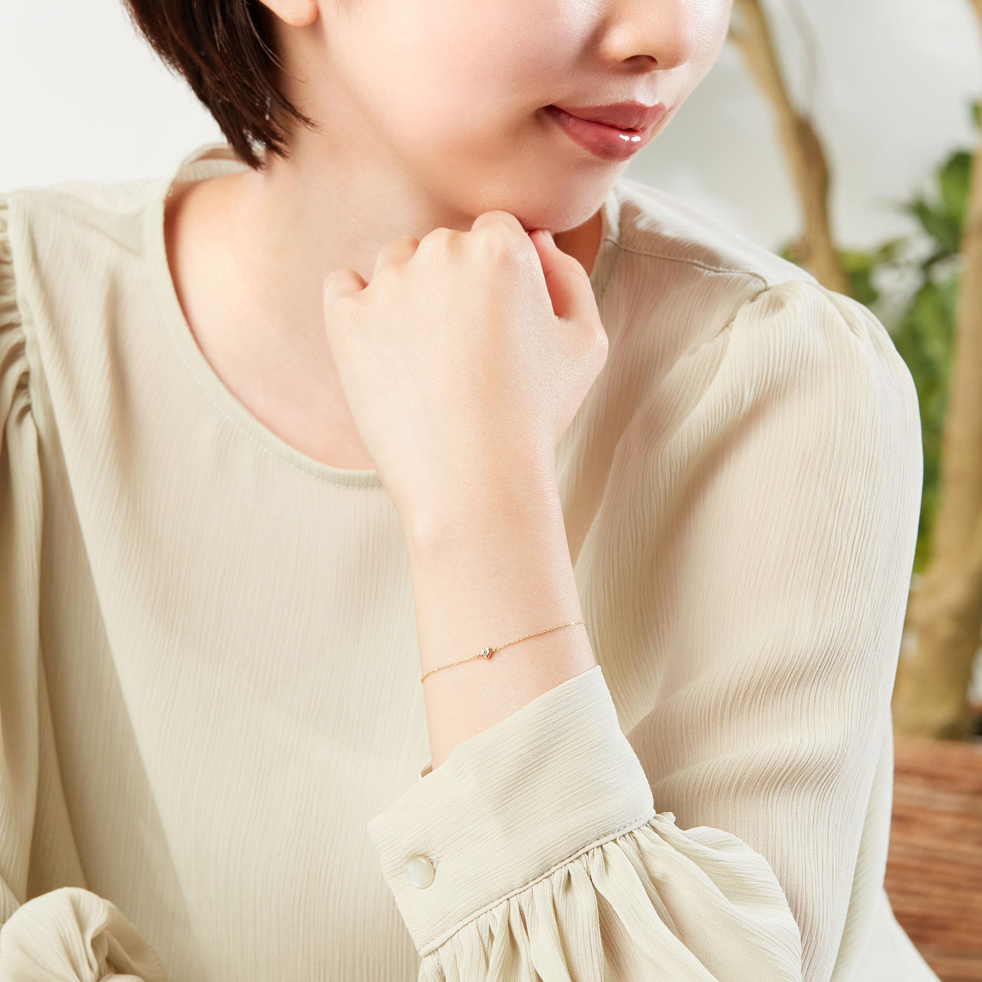ダイヤモンドの輝きが手元にきらめきを添えます。