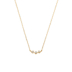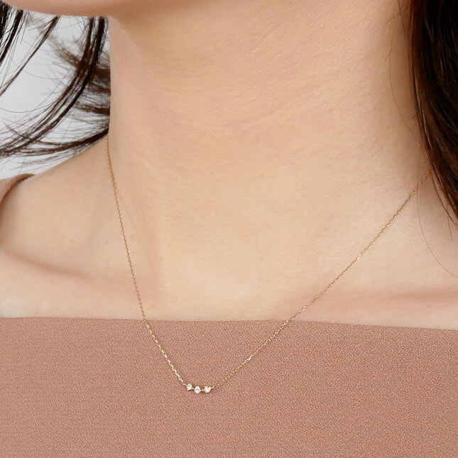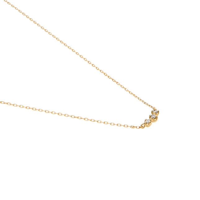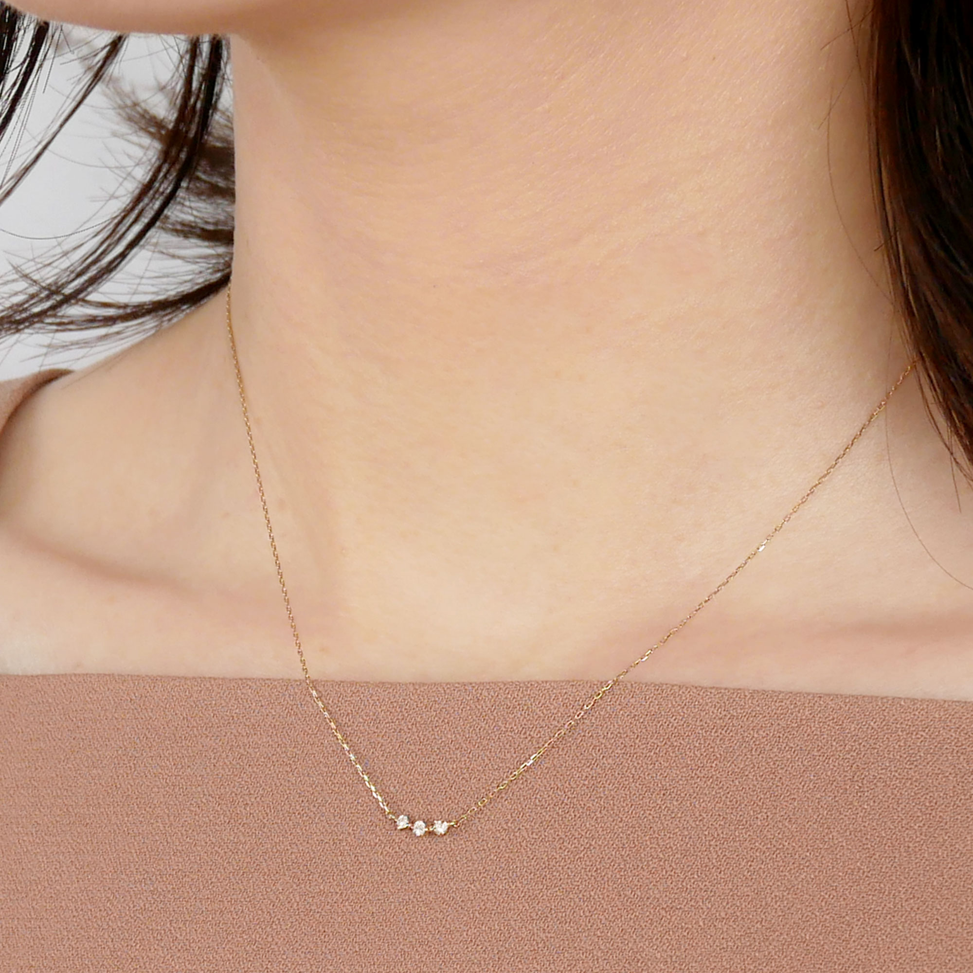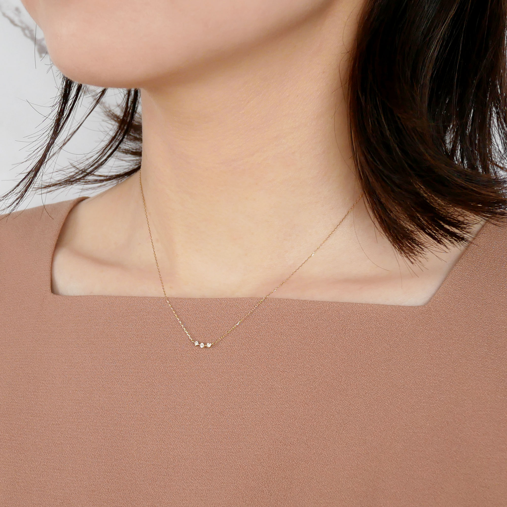 定番の3ストーンネックレス。 胸元で上品に揺れ、ダイヤモンドの輝きが一層引立ちます。 ▼カラーバリエーションはこちらホワイトゴールド / ピンクゴールド ▼4月の誕生石ダイヤモンドのアイテムはこちら
