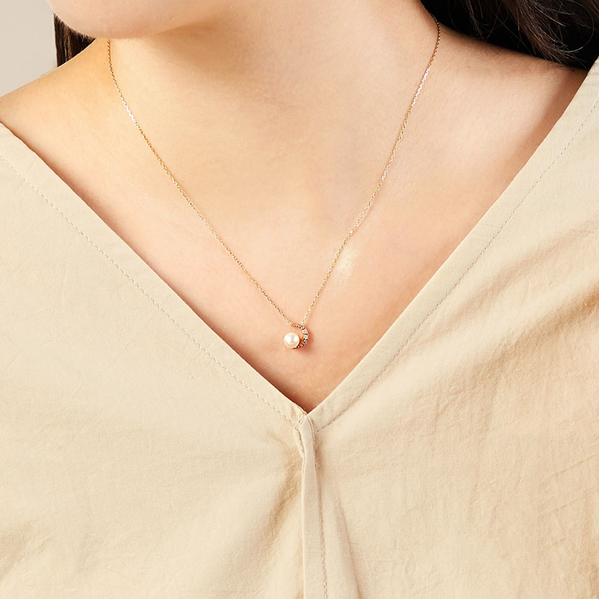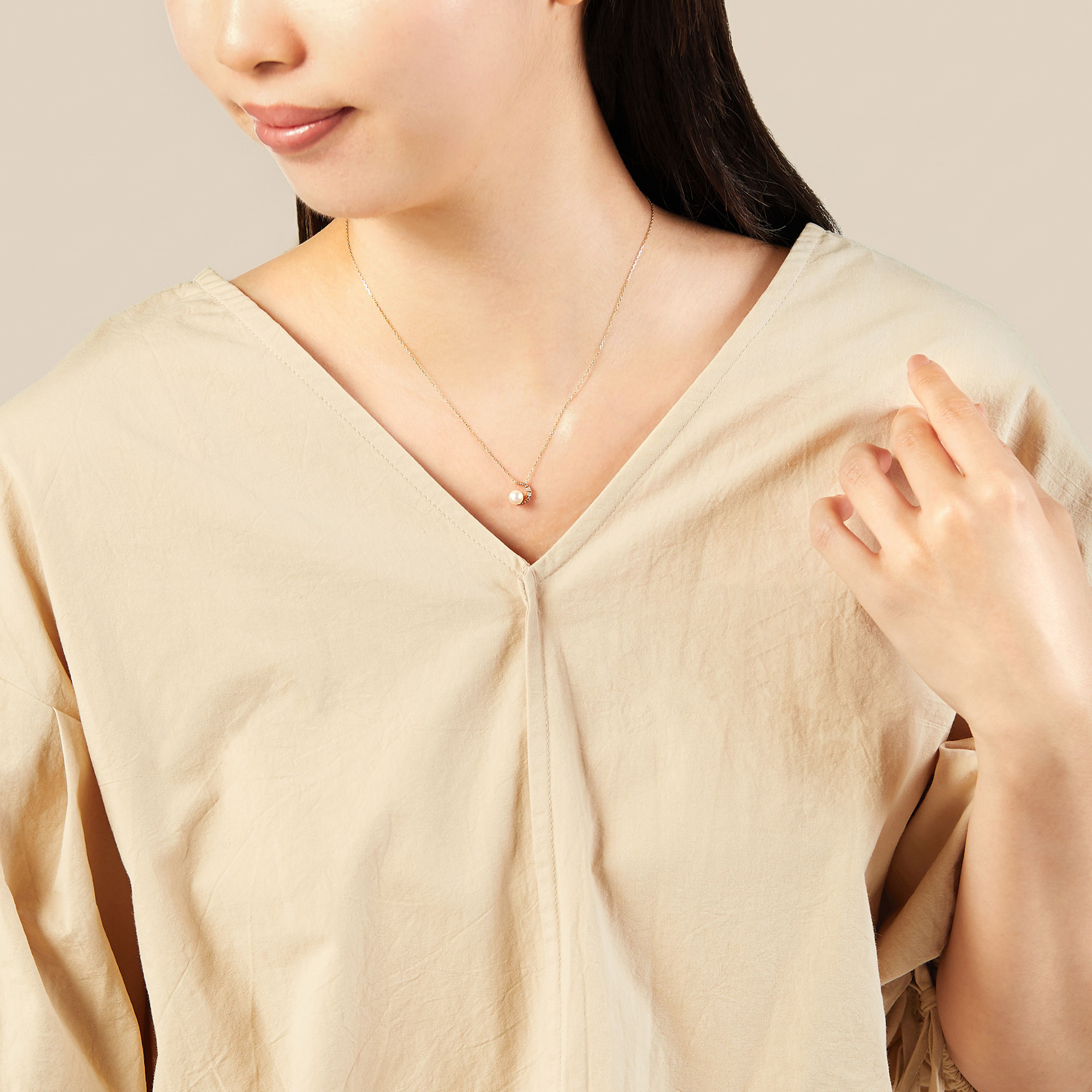 淡水パールがニュアンスをプラスしたネックレス。