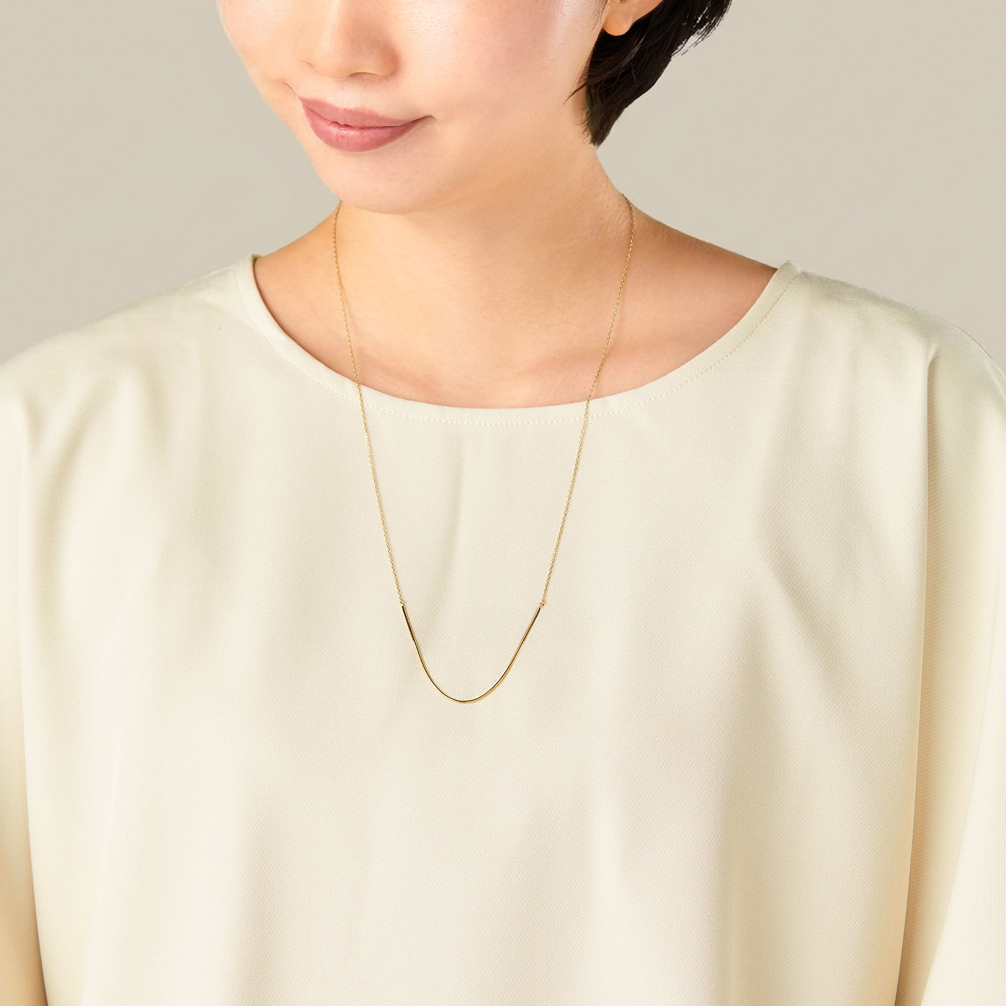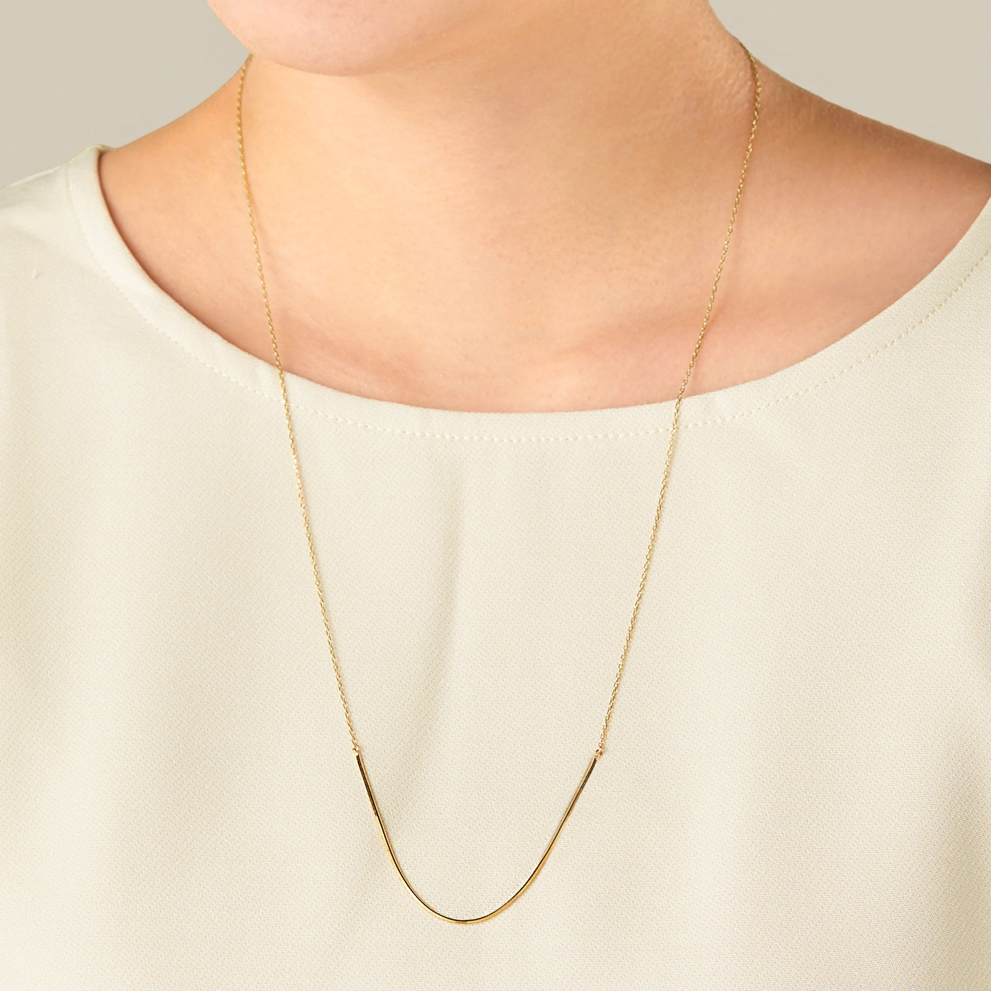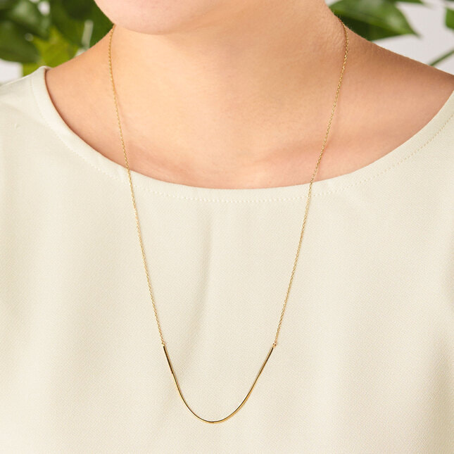 U字にカーブを描いた地金のラインが印象的なネックレス。