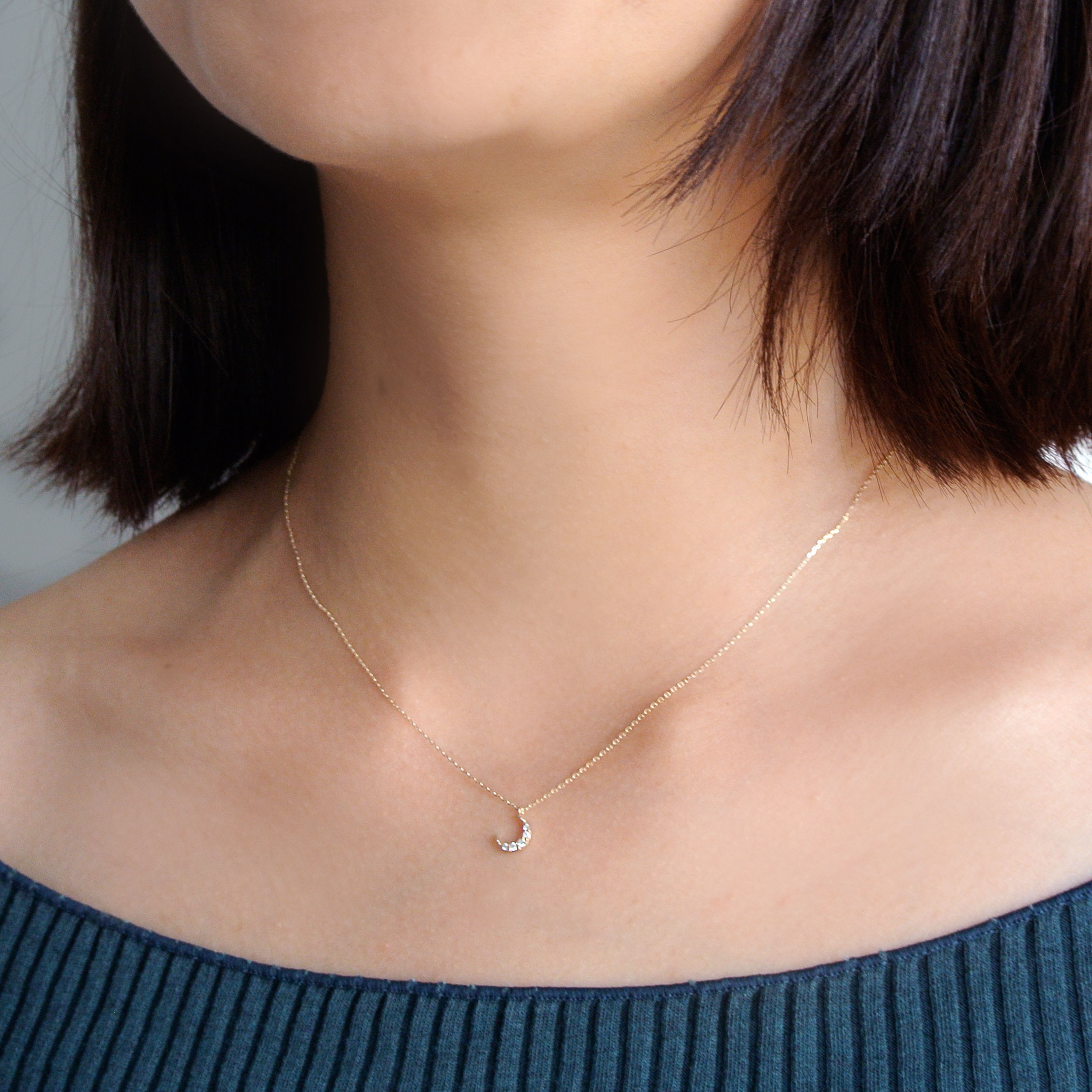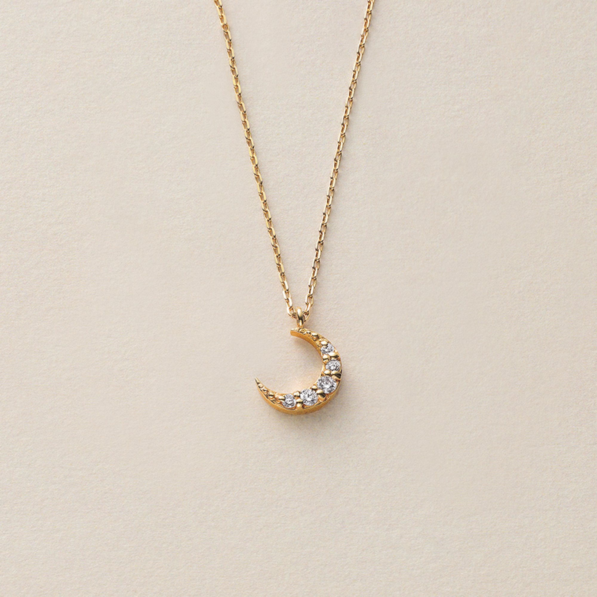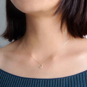 ダイヤモンドできらめかせた、ちょっぴり神秘的なムーンモチーフのネックレス。