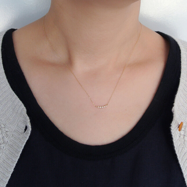 5石のダイヤモンドをデコルテに沿うように連ねたベーシックなネックレス。