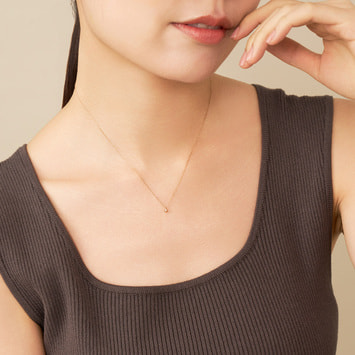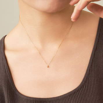 コロンとした丸みが愛らしい石座に一粒のきらめくダイヤモンドをセッティングしたベーシックなネックレス。